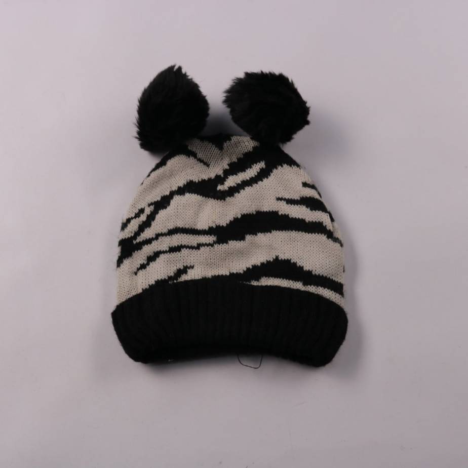 Вязаная шапка H&M с контрастным чёрно-белым узором и двумя помпонами, внутри утеплённая подкладкой. Подойдёт для прогулок и активных игр в холодную погоду. Мягкая подкладка помогает лучше сохранять тепло и защищает от ветра.