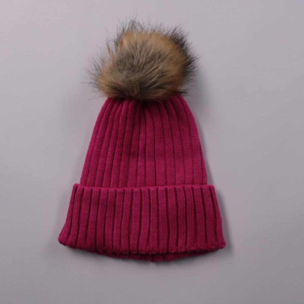 Вязаная шапка Primark в рубчик с помпоном из искусственного меха. Подойдёт для повседневной носки в холодную погоду и легко сочетается с пуховиком или пальто. Благодаря отвороту хорошо держит тепло и закрывает уши.