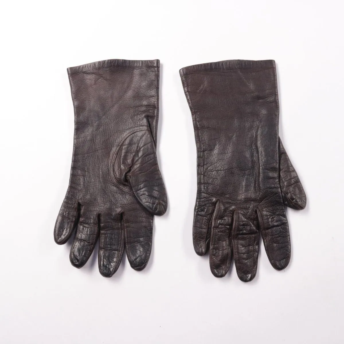Кожаные перчатки тёмно-коричневого цвета, классическая модель с удлинённой манжетой. Подойдут для повседневной носки в прохладную погоду и к пальто или куртке. Натуральная кожа хорошо защищает от ветра и долго носится.