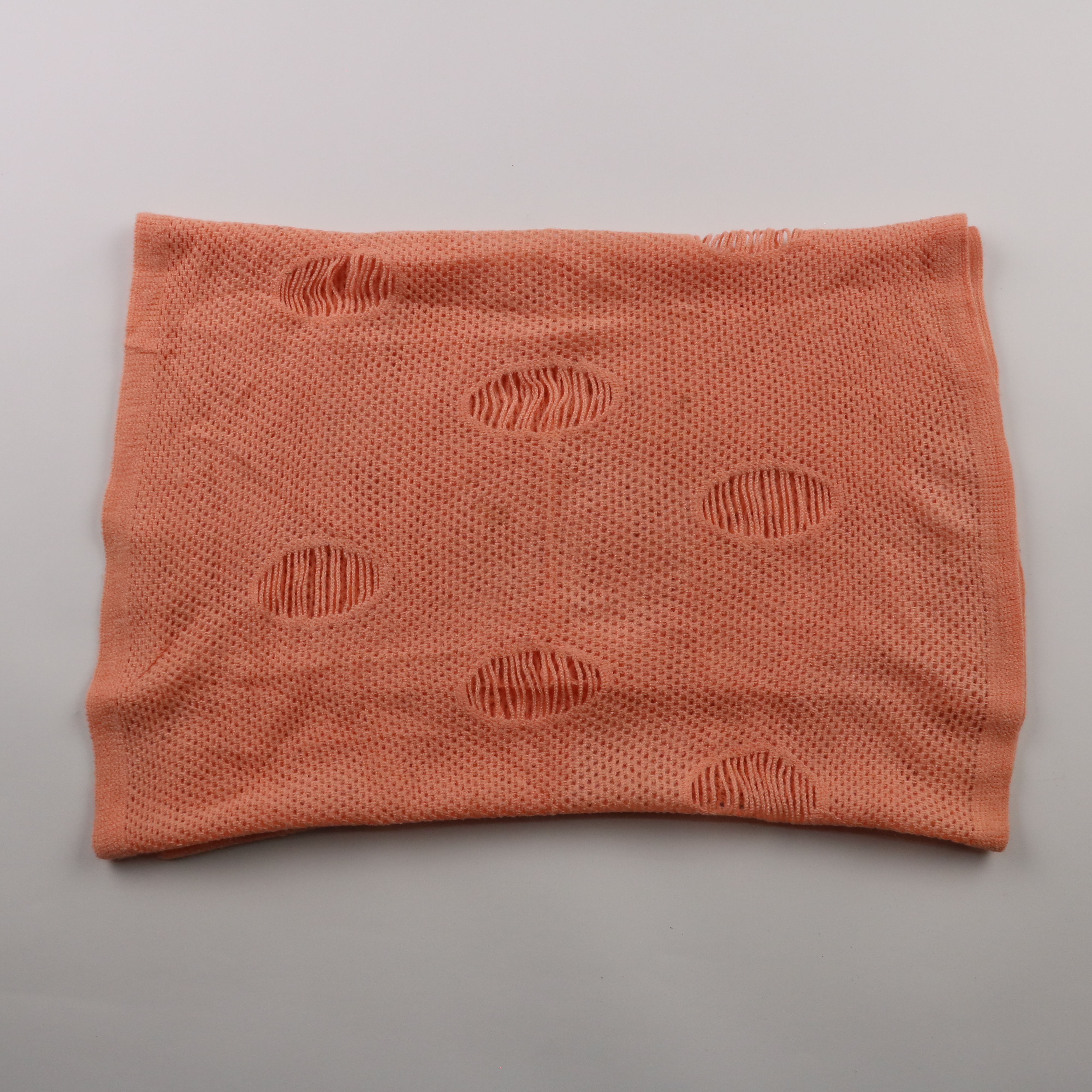 Вязаный шарф из 100% акрила с фактурной вязкой и декоративными прорезями. Подойдёт для повседневной носки в холодное время года и как яркий акцент в образе. Лёгкий в уходе и быстро сохнет после стирки.