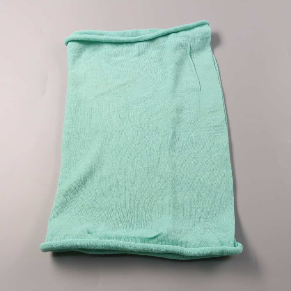 Трикотажный шарф-снуд мятного цвета без бренда. Подойдёт для прохладной погоды весной и осенью, удобно носить с курткой или пальто. Легко надевается через голову и хорошо защищает шею от ветра.