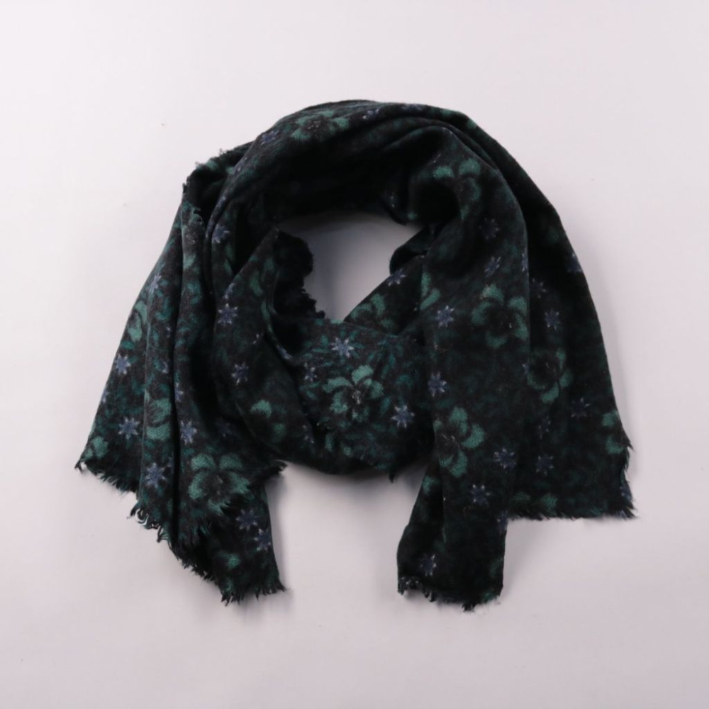 Шарф с цветочным принтом в тёмной гамме. Подойдёт для повседневных образов в прохладную погоду, можно носить как шарф или накинуть на плечи. Лёгкий и компактный, удобно брать с собой.