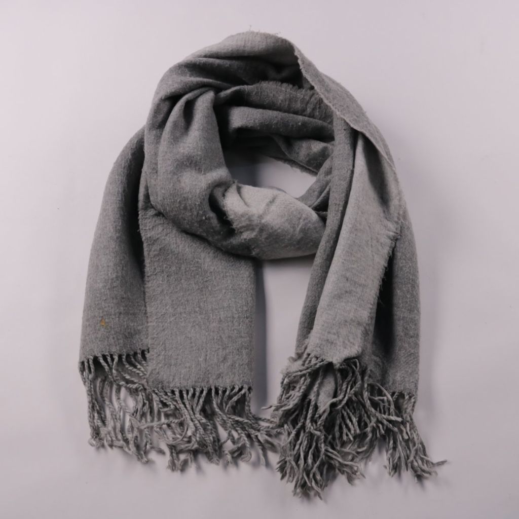 Серый шарф H&M Divided с бахромой по краям, мягкий и объёмный. Подойдёт для повседневной носки зимой и в прохладную погоду, легко сочетается с верхней одеждой. Практичное преимущество — акриловый материал прост в уходе и быстро сохнет.