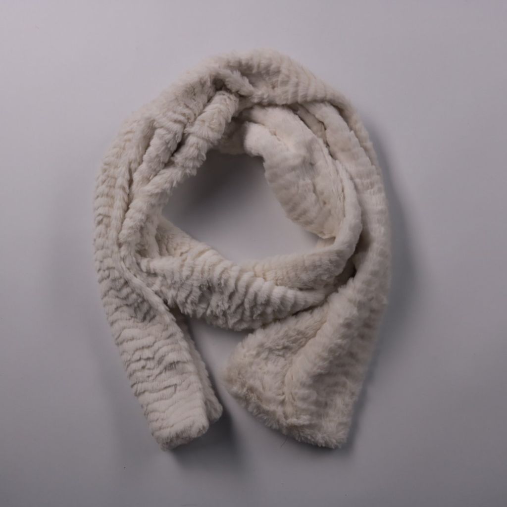 Мягкий меховой шарф светло-бежевого цвета без видимого бренда. Подойдёт для повседневных зимних образов и дополнительного утепления шеи в холодную погоду. Плюшевый материал приятен к коже и хорошо удерживает тепло.