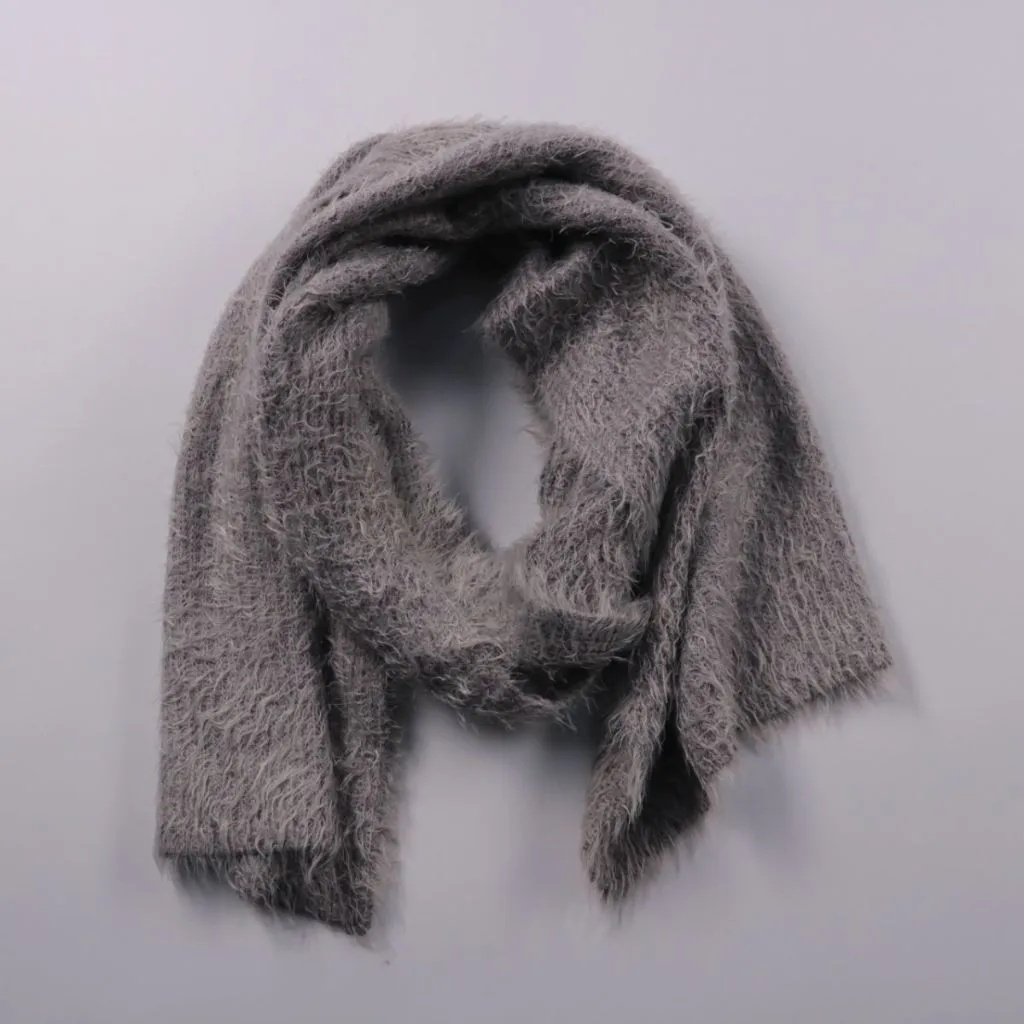Вязаный шарф без указанного бренда, мягкий и пушистый на ощупь. Подойдёт для повседневных образов в холодную погоду и для утепления верхней одежды. Удобно драпируется и хорошо сохраняет тепло.