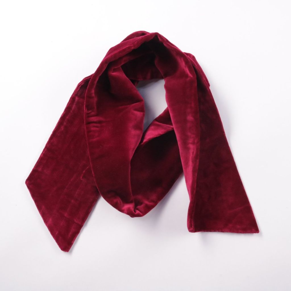 Бордовый бархатный шарф с мягкой фактурой и лаконичным прямоугольным кроем. Подойдёт для прогулок и городских образов в прохладную погоду, добавляя аккуратный акцент по цвету. Бархат приятно ощущается на коже и помогает сохранить тепло.