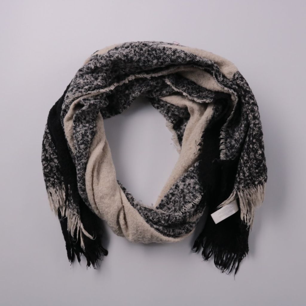Шарф Atmosphere в клетку с бахромой, выполнен в чёрно-серо-бежевой гамме. Подойдёт для повседневных образов и утепления в холодную погоду. Материал из полиэстера практичен в уходе и быстро сохнет после ручной стирки.
