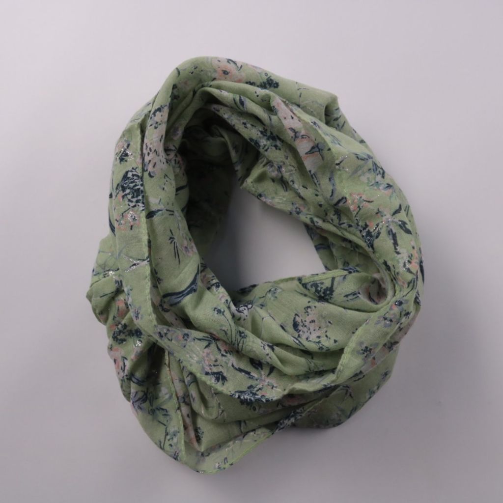 Лёгкий шарф с цветочным принтом на зелёном фоне, подойдёт для повседневных образов и прогулок. Удобен в демисезон и прохладным летом, можно носить как шарф или накинуть на плечи. Практичное преимущество — компактно складывается и не занимает много мест...