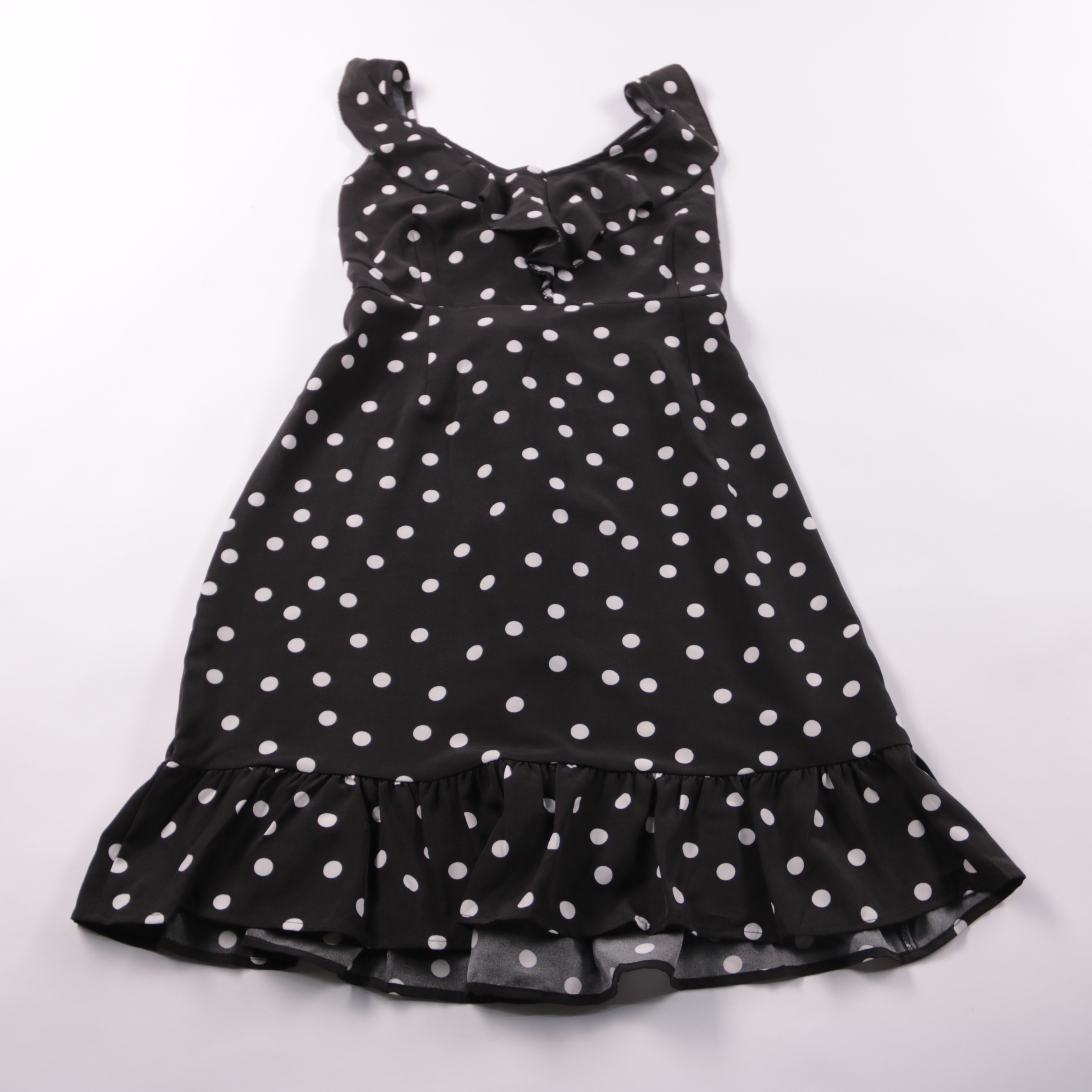 Детское платье в чёрном цвете с белым принтом в горошек и оборкой по низу. Подойдёт для прогулок и праздничных мероприятий в тёплое время года. Лёгкий полиэстер быстро сохнет и почти не мнётся.