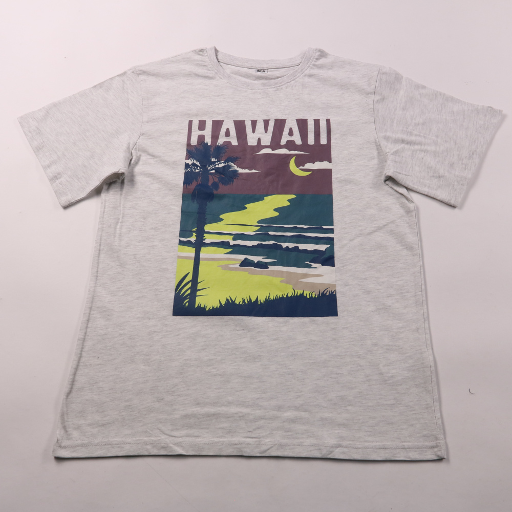 Футболка Zeeman светло-серого цвета с принтом «HAWAII». Подойдёт для повседневной носки и прогулок в тёплую погоду. Мягкий хлопковый материал хорошо пропускает воздух и прост в уходе.