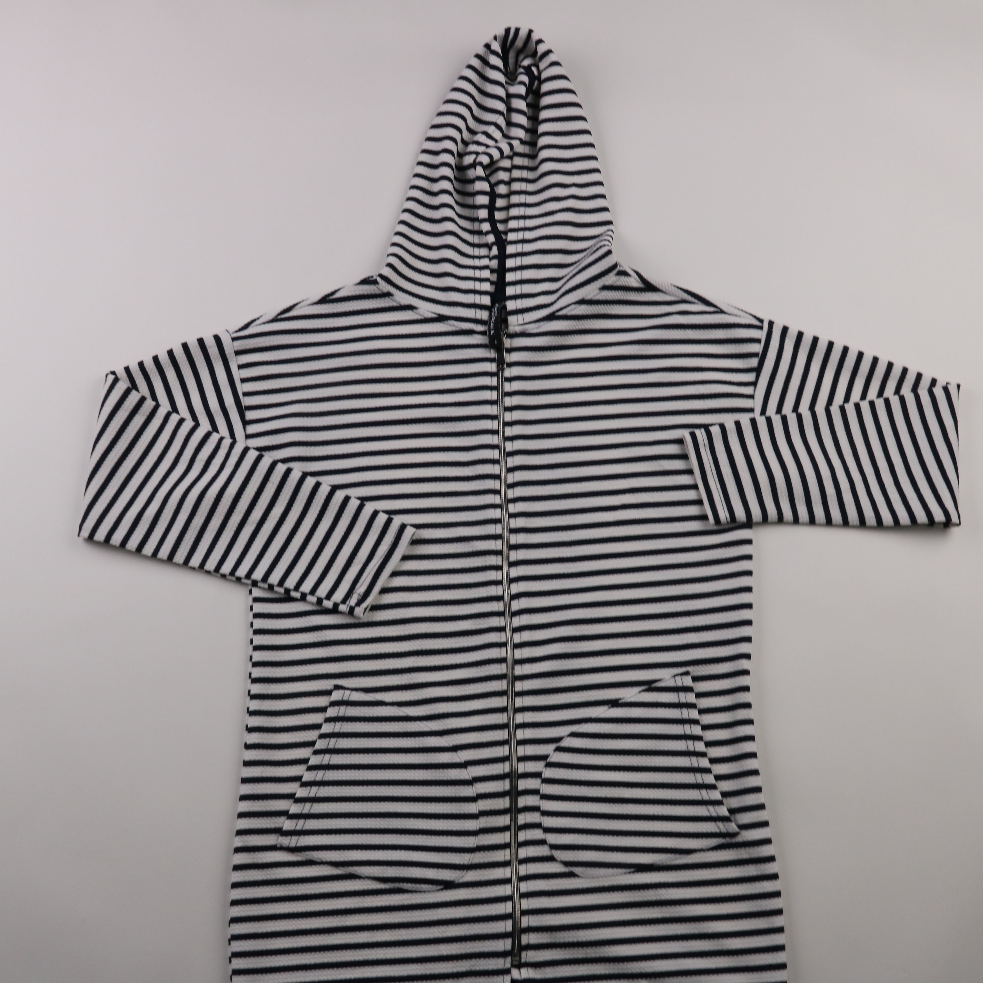 Толстовка Jean Pascale на молнии с капюшоном и карманами-«кенгуру», выполнена в бело-синюю полоску. Подойдёт для прогулок и школы в прохладную погоду, удобно носить поверх футболки. Практичный плюс — молния позволяет быстро надевать и снимать, а капюшо...