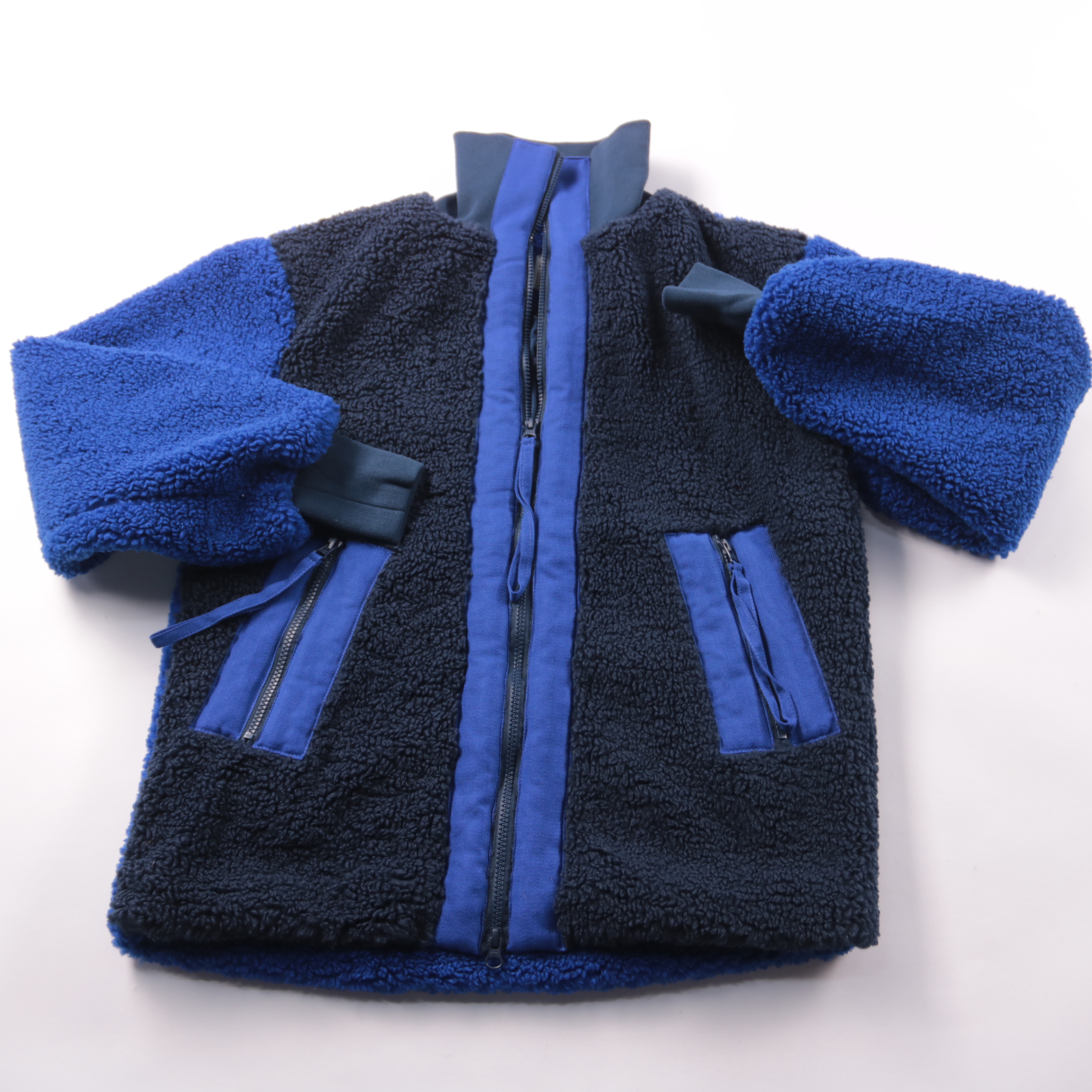 Флисовая куртка George (Roksanda) в сине-тёмно-синей расцветке, на молнии и с высоким воротником. Подойдёт для прогулок в прохладную погоду весной и осенью, удобно носить как средний слой. Два кармана на молнии — можно безопасно положить мелочи.