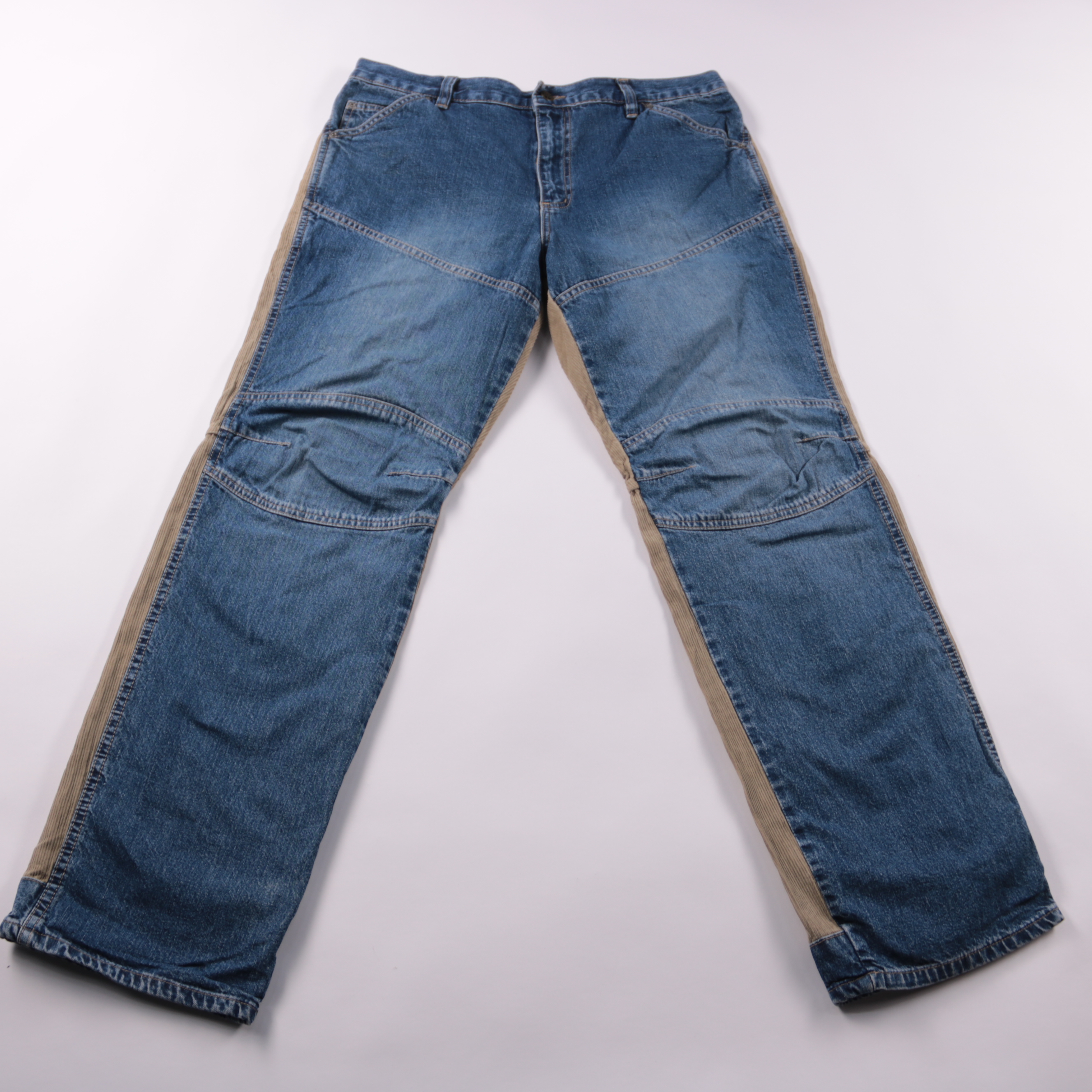Мужские джинсы Wager из денима синего цвета с вставками по бокам и усиленными коленями. Подойдут для повседневной носки и активного дня, когда нужны более прочные брюки. Практичное преимущество — плотный материал и усиленные зоны меньше протираются.