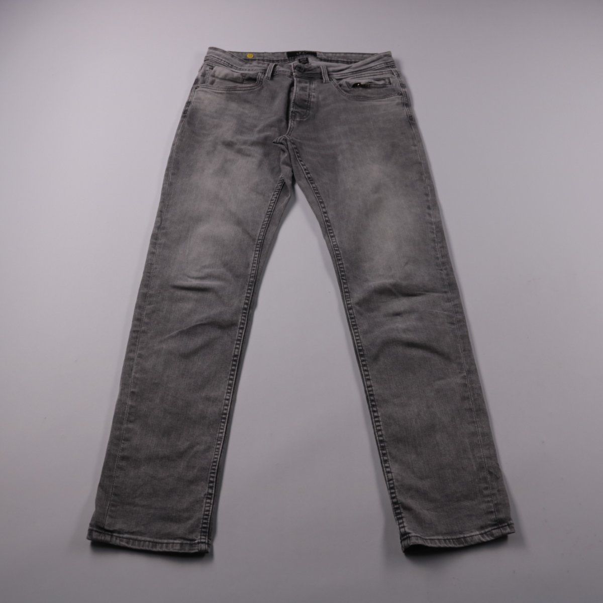 Мужские джинсы Smog серого цвета, размер на бирке 32/34. Подойдут для повседневной носки и городских образов, прямой крой легко сочетается с футболками и рубашками. Плотный хлопковый деним с добавлением эластана обеспечивает более комфортную посадку.