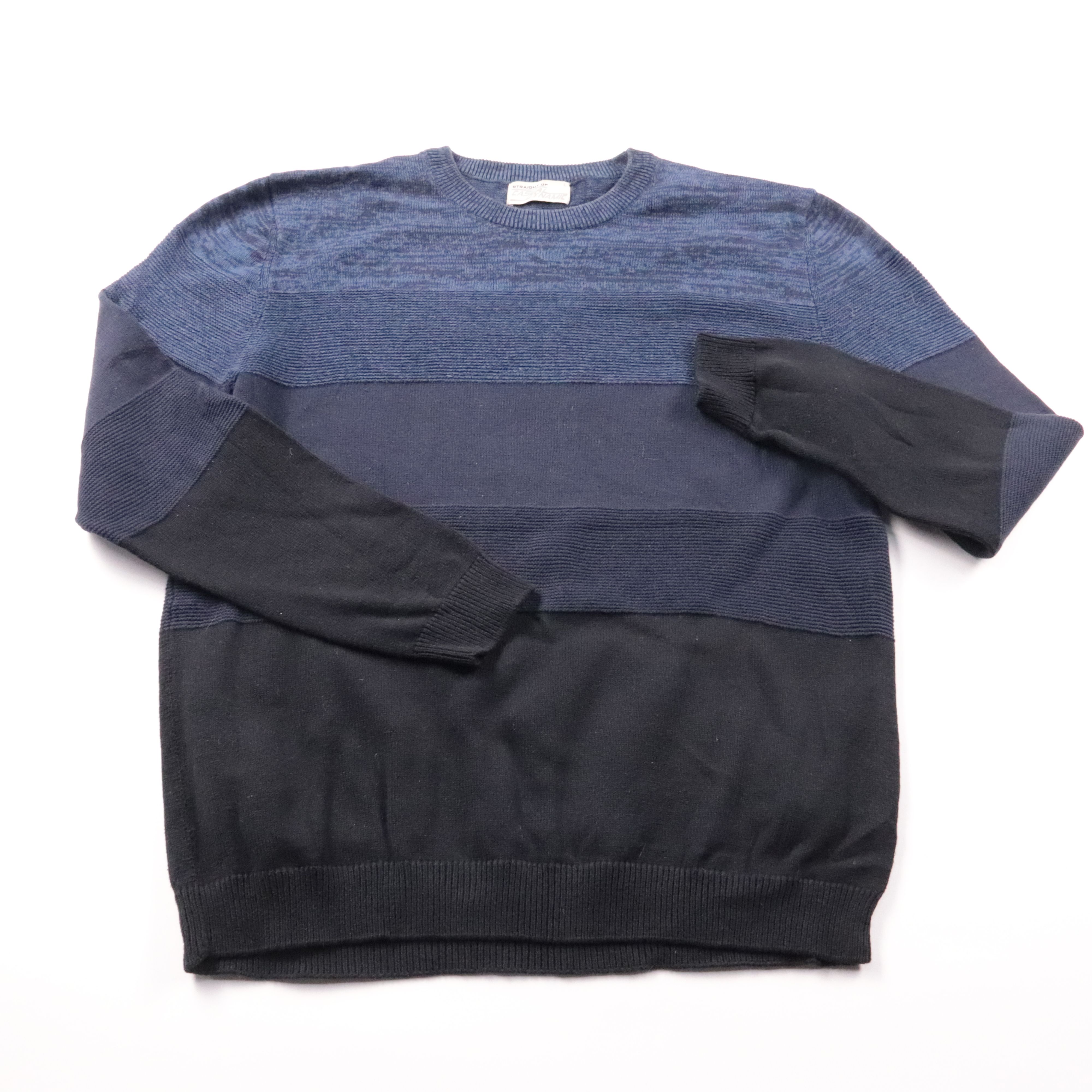 Мужской джемпер Straight Up с фактурной вязкой и полосами в сине-чёрной гамме. Подойдёт для повседневной носки в прохладную погоду, хорошо сочетается с джинсами и чиносами. Натуральный хлопок в составе делает его комфортным и дышащим.