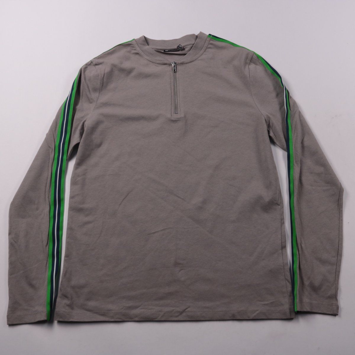 Мужская кофта ASOS DESIGN серого цвета с короткой молнией у горловины и лампасами на рукавах. Подойдёт для повседневной носки в прохладную погоду и как слой под куртку. Натуральный хлопок хорошо пропускает воздух и комфортен в носке.