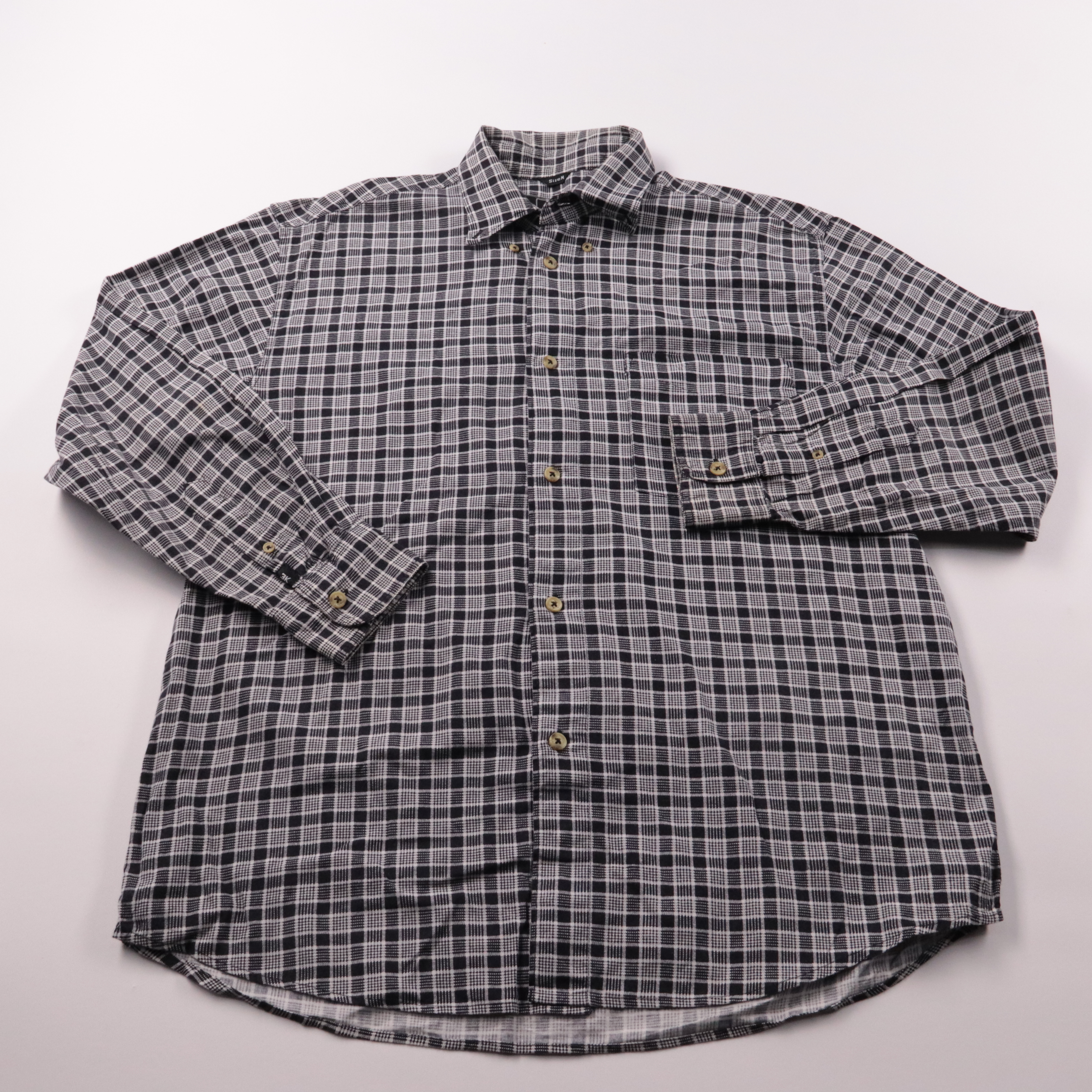Мужская рубашка The Good Luck в чёрно-белую клетку, из хлопка. Подойдёт для повседневной носки и неформального офиса, хорошо смотрится как самостоятельный слой или поверх футболки. Хлопковая ткань дышит и комфортна в течение дня.