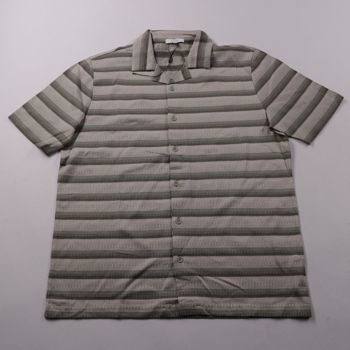 Мужская рубашка ARNE из 100% хлопка, короткий рукав, застёжка на пуговицы, воротник с лацканами. Подойдёт для повседневной носки в тёплую погоду и отпусков благодаря лёгкой дышащей ткани. Полосатый серо-оливковый дизайн легко сочетать с джинсами и шортами.