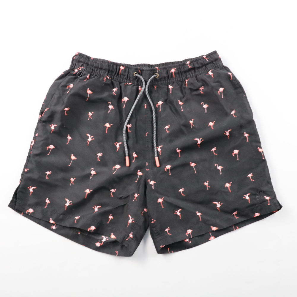 Пляжные шорты Lost Minds с принтом фламинго и эластичным поясом на шнурке. Подойдут для моря, бассейна и летнего отдыха. Лёгкий полиэстер быстро сохнет и не утяжеляется в воде.