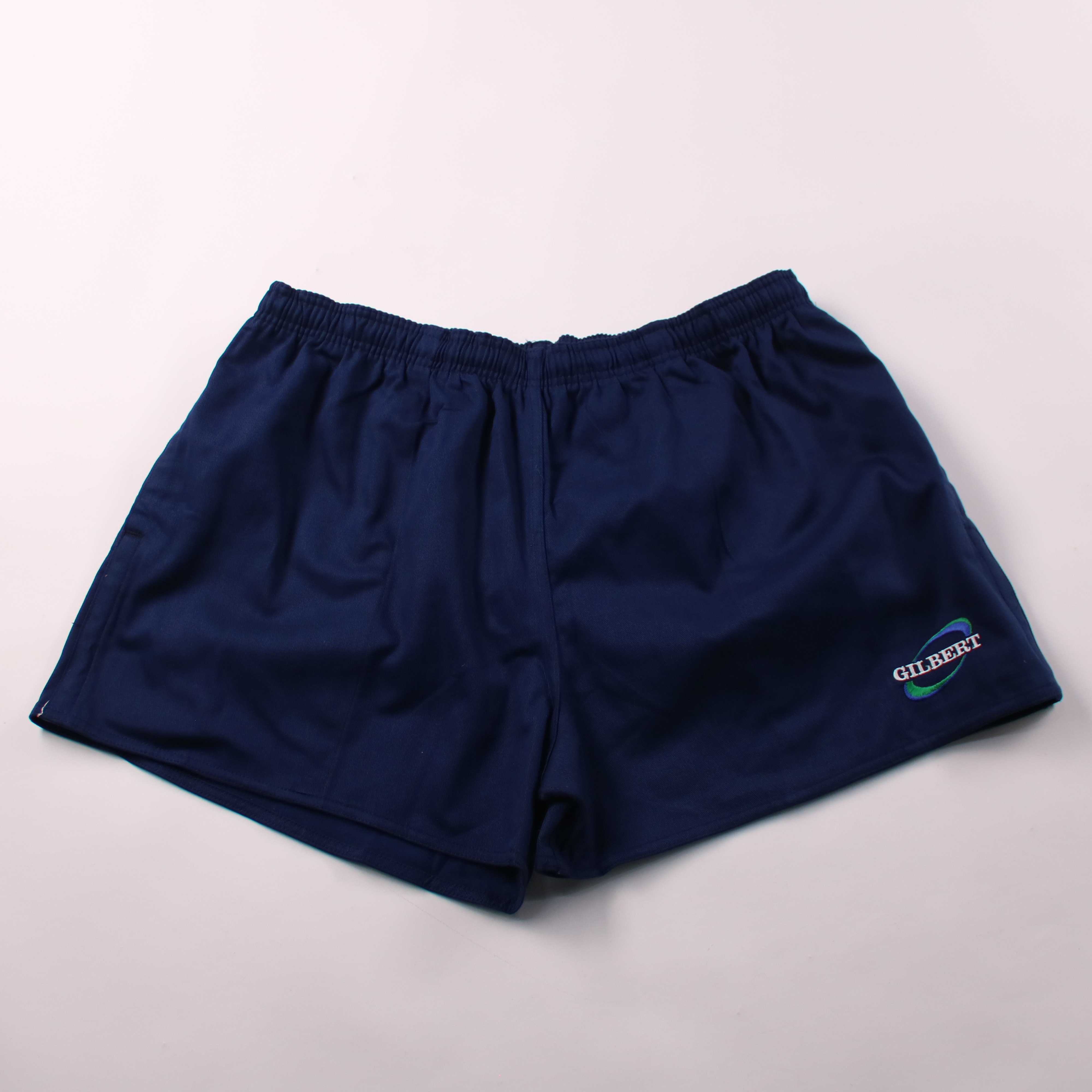 Мужские спортивные шорты Gilbert тёмно-синего цвета с эластичным поясом. Подойдут для тренировок, бега и активного отдыха в тёплую погоду. Лёгкий хлопковый материал комфортно носится и хорошо пропускает воздух.