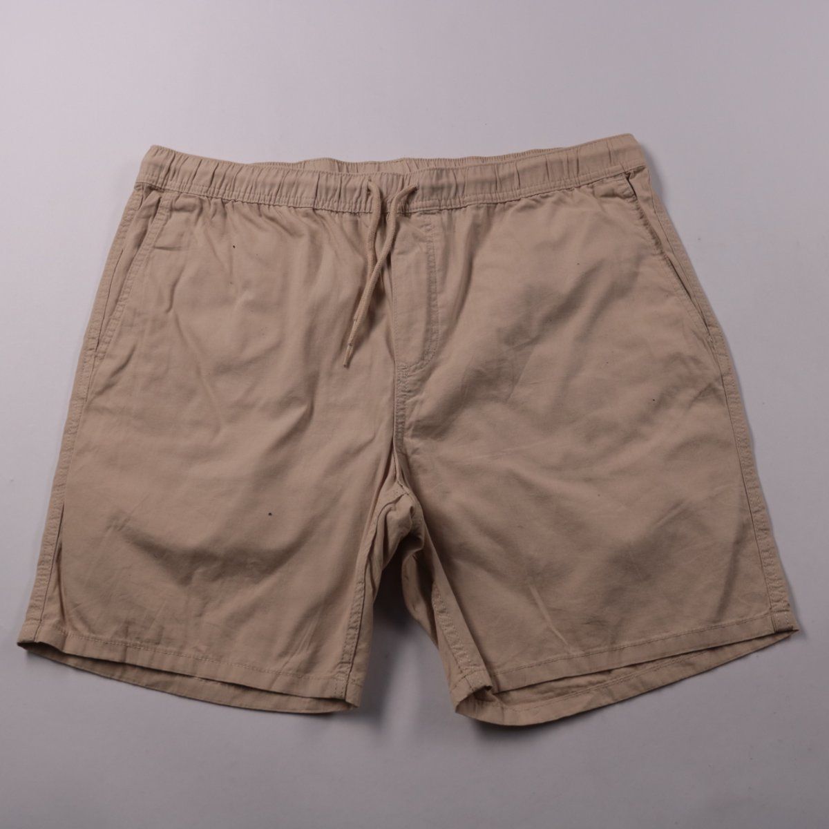 Мужские шорты H&M Regular Fit бежевого цвета с эластичным поясом и шнурком. Подойдут для повседневной носки и поездок в тёплую погоду. Практичны за счёт лёгкой хлопковой ткани и удобной посадки.