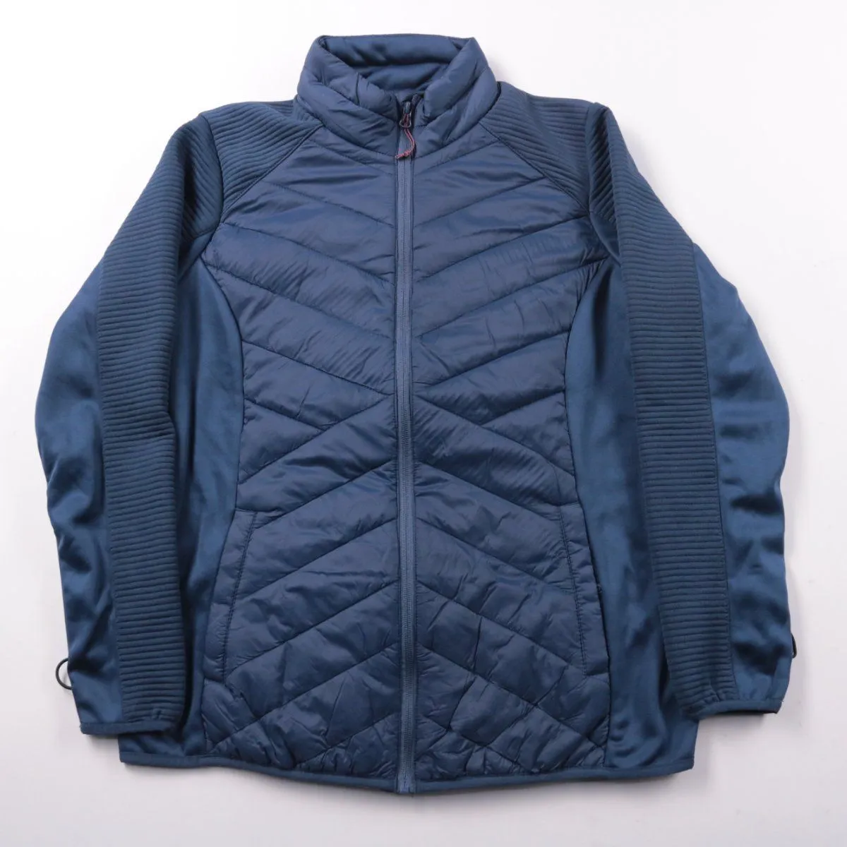 Мужская лёгкая стёганая куртка с воротником-стойкой и застёжкой на молнию. Подойдёт для города и прогулок в прохладную погоду, утеплитель из переработанного полиэстера. Практичный плюс — лёгкая, быстро сохнет и удобна как верхний слой или под жилет/пальто.