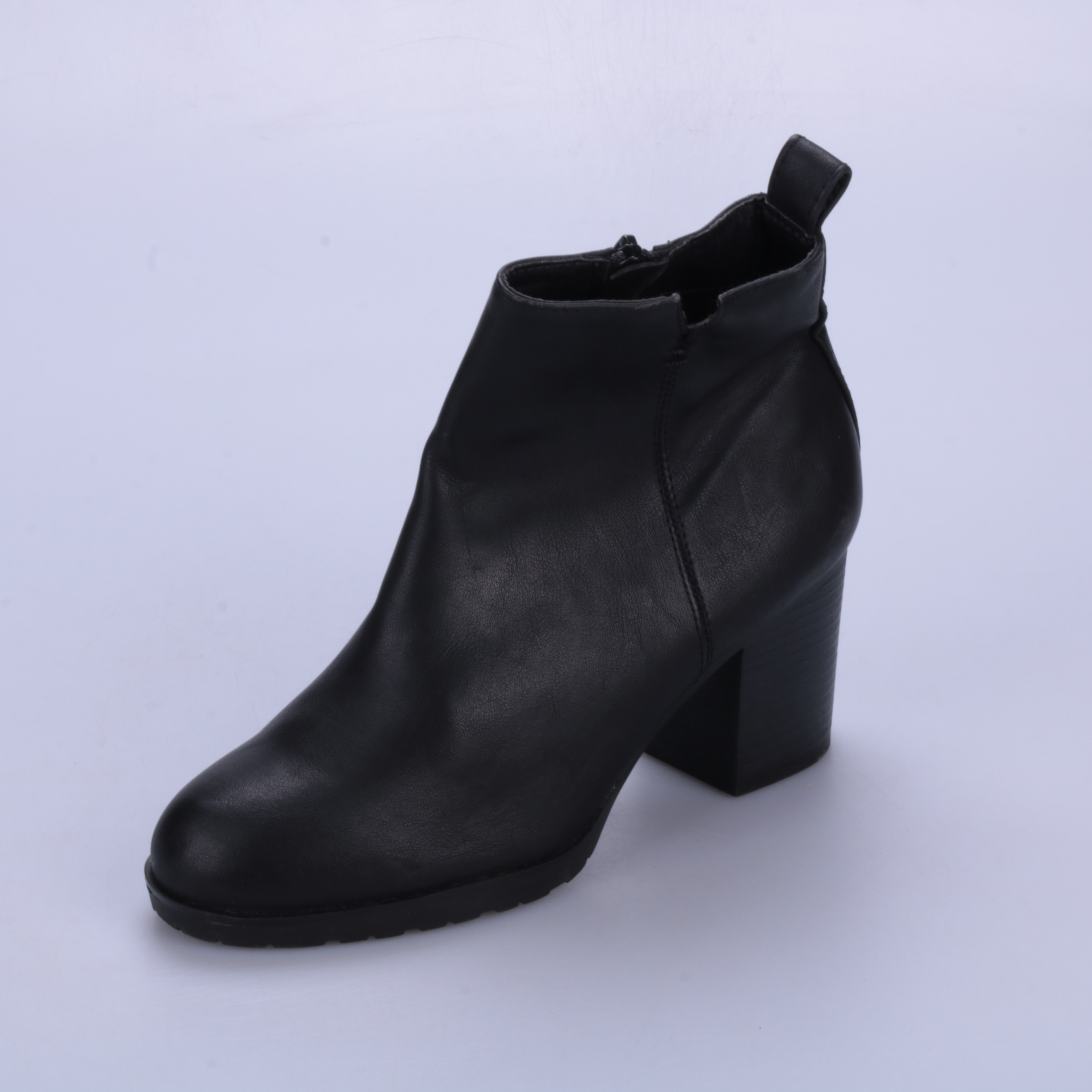 Женские ботильоны из гладкого чёрного материала на устойчивом каблуке, с боковой молнией и петлёй для удобства надевания. Подойдут для повседневных образов в межсезонье и на выход, хорошо сочетаются с джинсами и платьями. Рельефная подошва даёт более у...