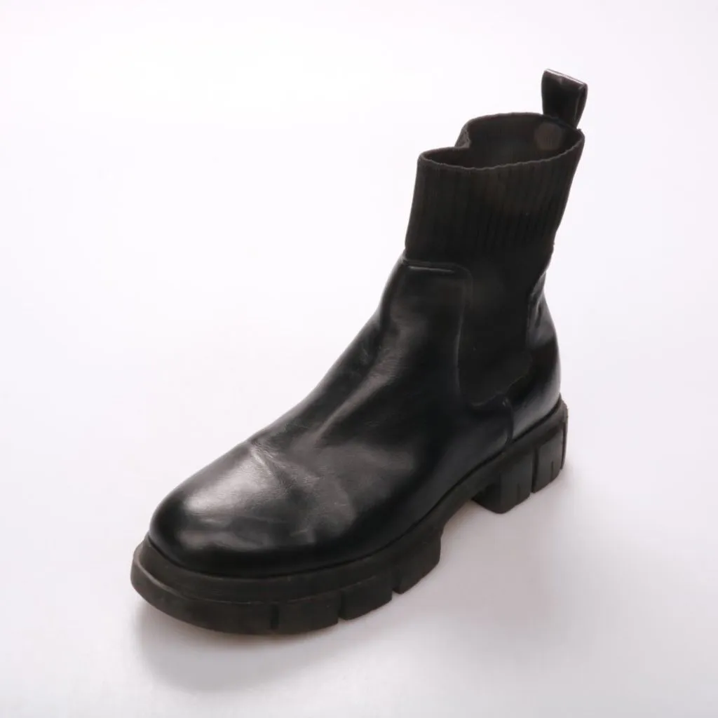 Женские ботильоны Catwalk из чёрной кожи с эластичным «носочным» голенищем и петлёй для удобного надевания. Подойдут для повседневной носки в городе осенью и весной. Толстая рельефная подошва даёт более уверенное сцепление на мокром асфальте.