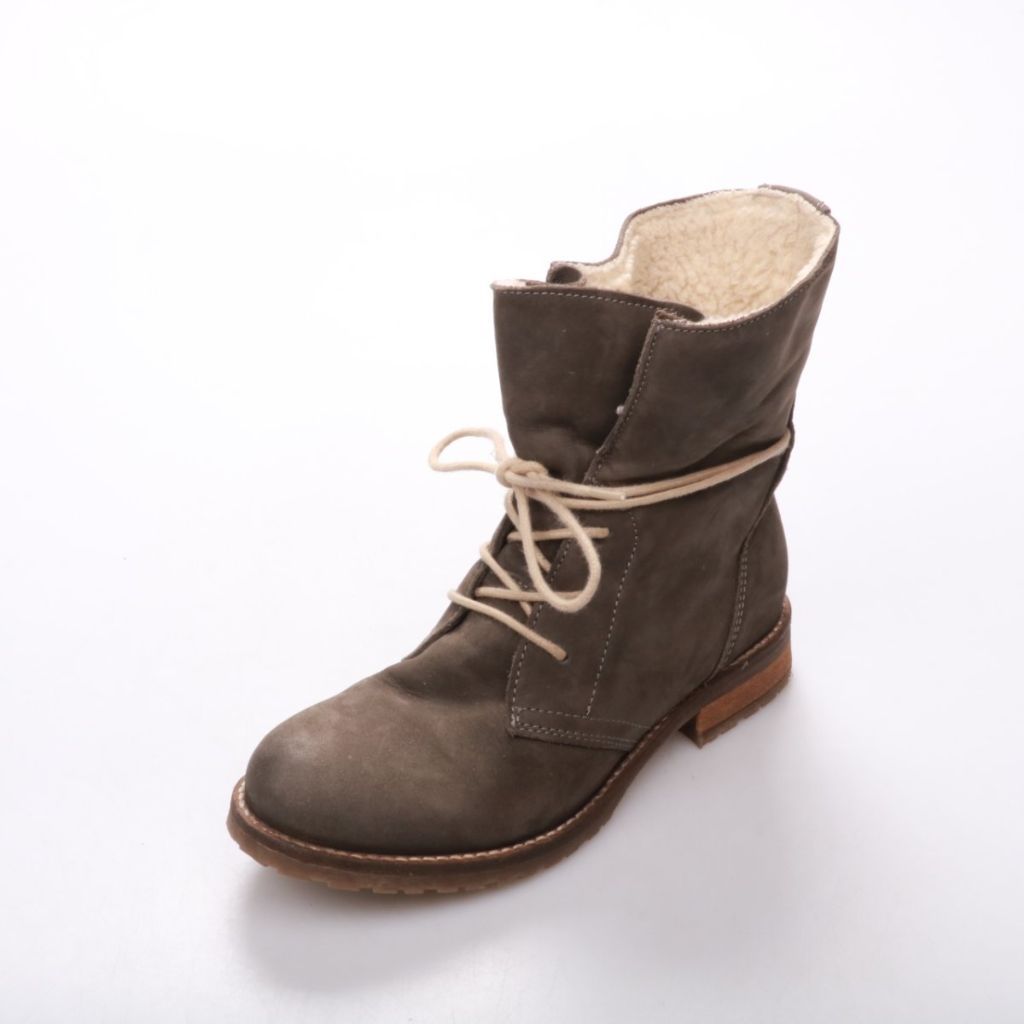 Женские ботинки без бренда из замши/нубука на шнуровке с мягкой меховой подкладкой. Подойдут для зимних прогулок и повседневной носки в холодную погоду. Рифлёная резиновая подошва даёт более уверенное сцепление на улице.