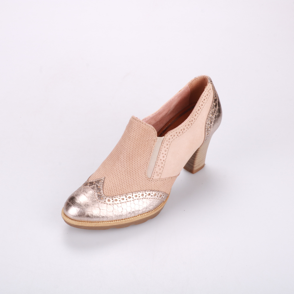 Туфли Tamaris в бежевом цвете с вставками под металлик и фактурой под рептилию, на устойчивом каблуке. Подойдут для офиса и повседневных выходов в демисезон, хорошо смотрятся с брюками и юбками. Эластичные вставки по бокам помогают обуви удобно садитьс...