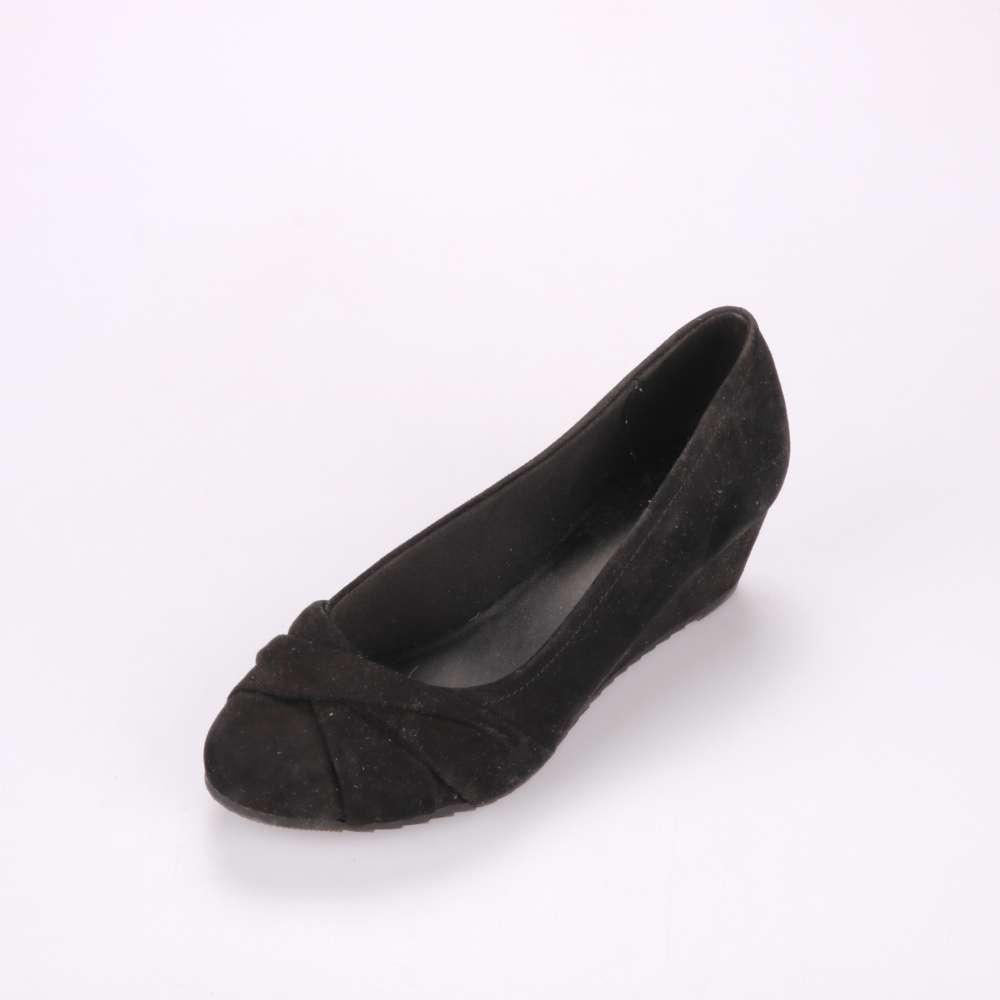 Туфли Graceland на танкетке из искусственной замши, чёрного цвета. Подойдут для офиса и повседневных образов, хорошо сочетаются с брюками и платьями. Устойчивая танкетка и рифлёная подошва делают ходьбу комфортнее и снижают скольжение.
