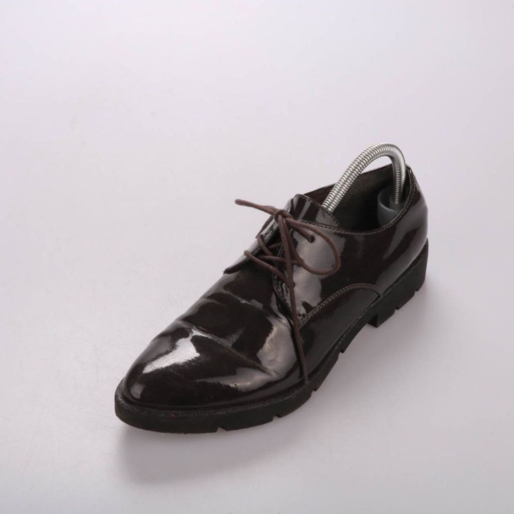 Лаковые туфли Tamaris на шнуровке в тёмно-коричневом цвете. Подойдут для офиса и повседневных образов в демисезон, хорошо смотрятся с брюками и юбками. Толстая рифлёная подошва устойчивее и практичнее на мокрой дороге.