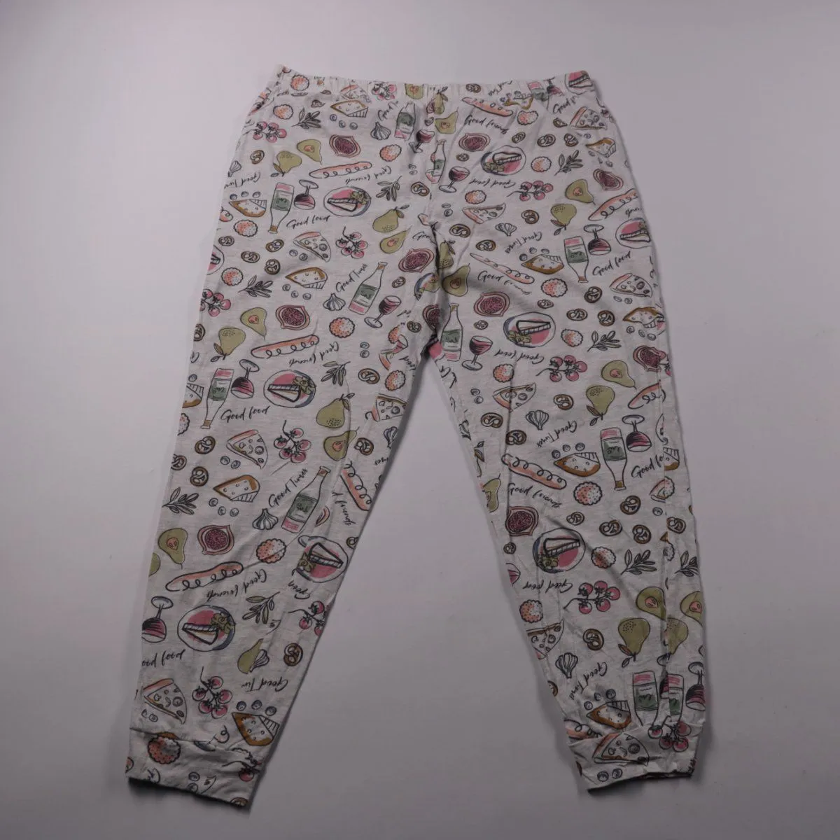 Женские брюки George светло-серого цвета с принтом еды и напитков и манжетами по низу. Подойдут для дома и сна, а также для расслабленных повседневных образов. Мягкий хлопковый трикотаж хорошо дышит и не стесняет движений.