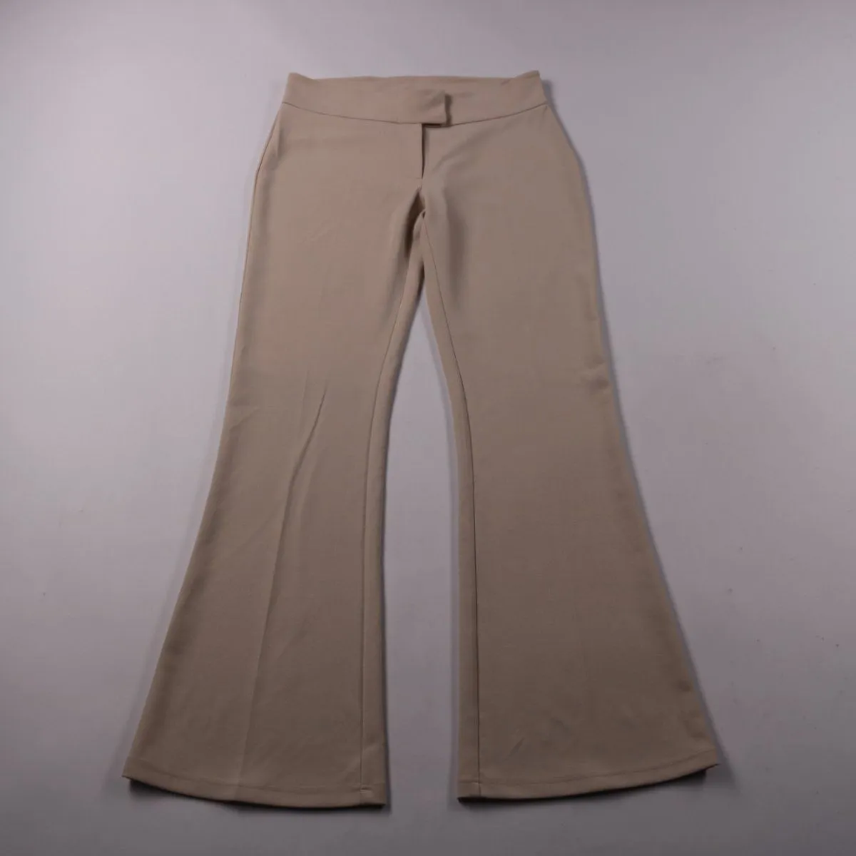 Женские бежевые брюки Gina Tricot с расклешёнными штанинами и высокой посадкой. Подойдут для повседневных образов и офиса, хорошо смотрятся с топами и жакетами. Эластичный материал тянется и комфортно садится по фигуре.