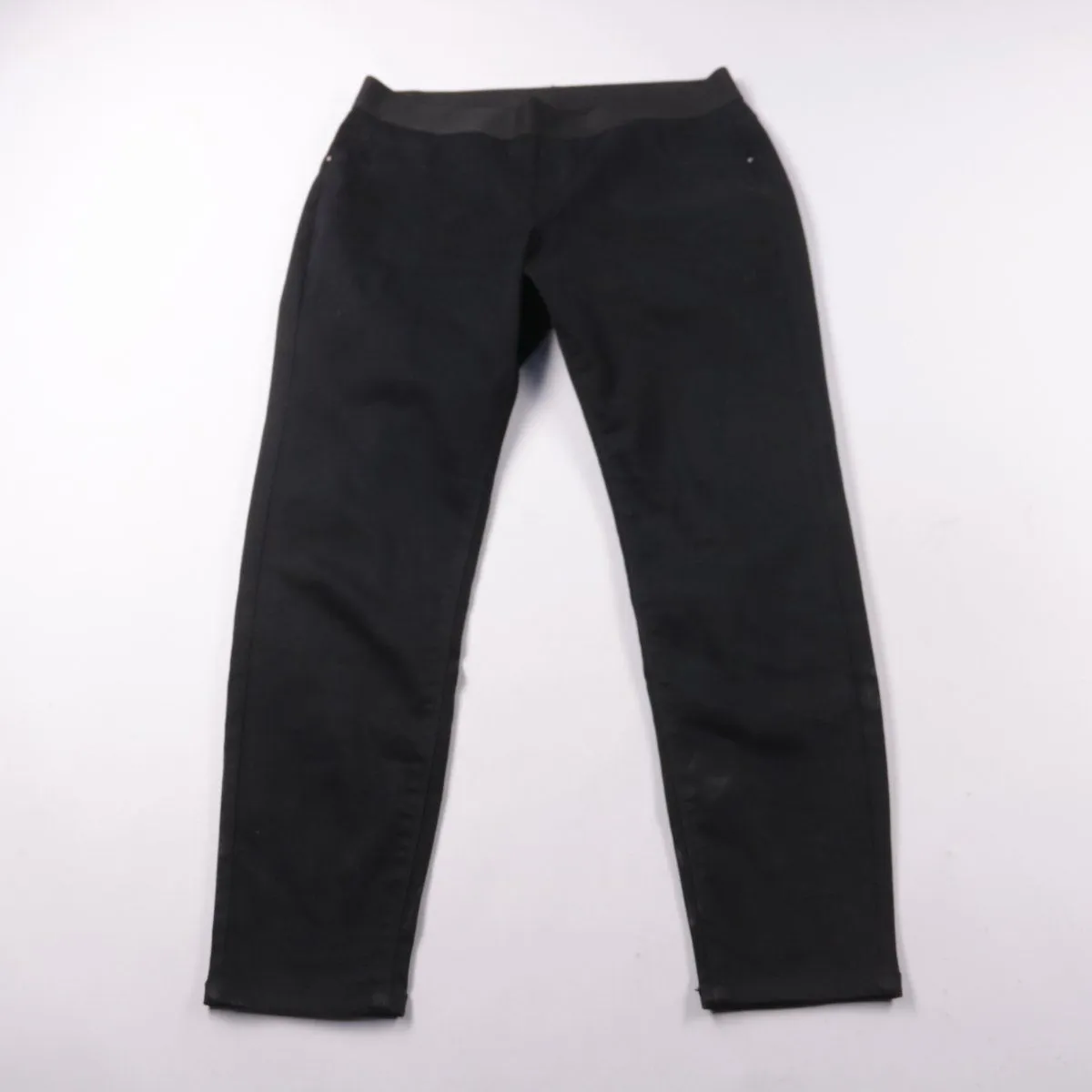 Женские чёрные брюки прямого кроя без видимого бренда. Подойдут для офиса и повседневных образов, хорошо сочетаются с базовыми вещами. Практичный плюс — плотная ткань и удобные задние карманы.