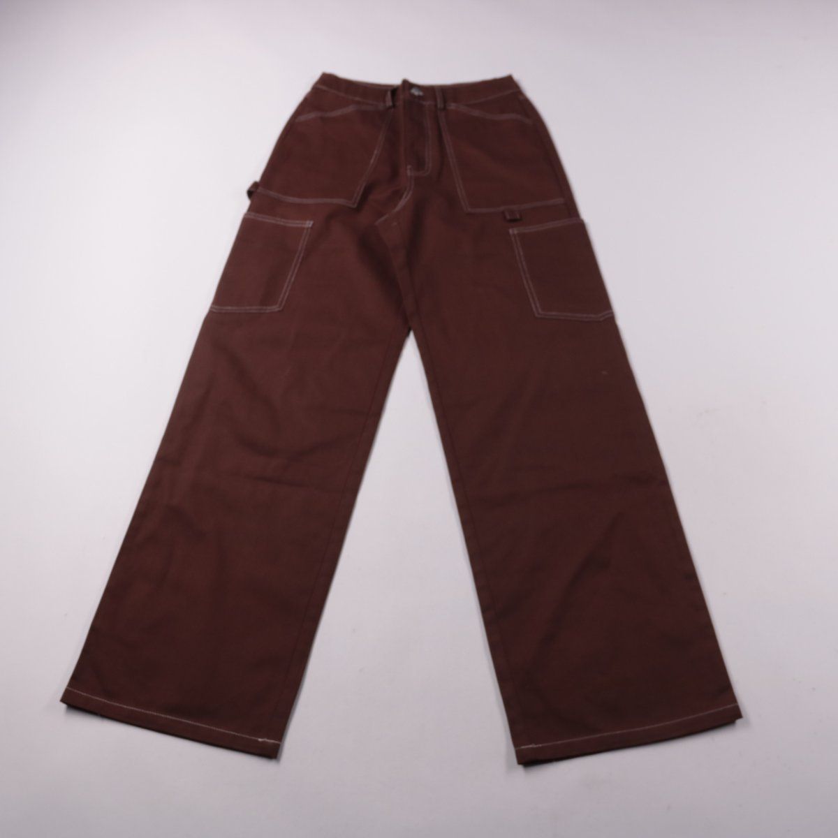 Брюки Pieces из плотного хлопка коричневого цвета, прямого кроя с накладными карманами и контрастной строчкой. Подойдут для повседневных образов в стиле casual/utility. Практичный материал хорошо держит форму и удобен в носке.