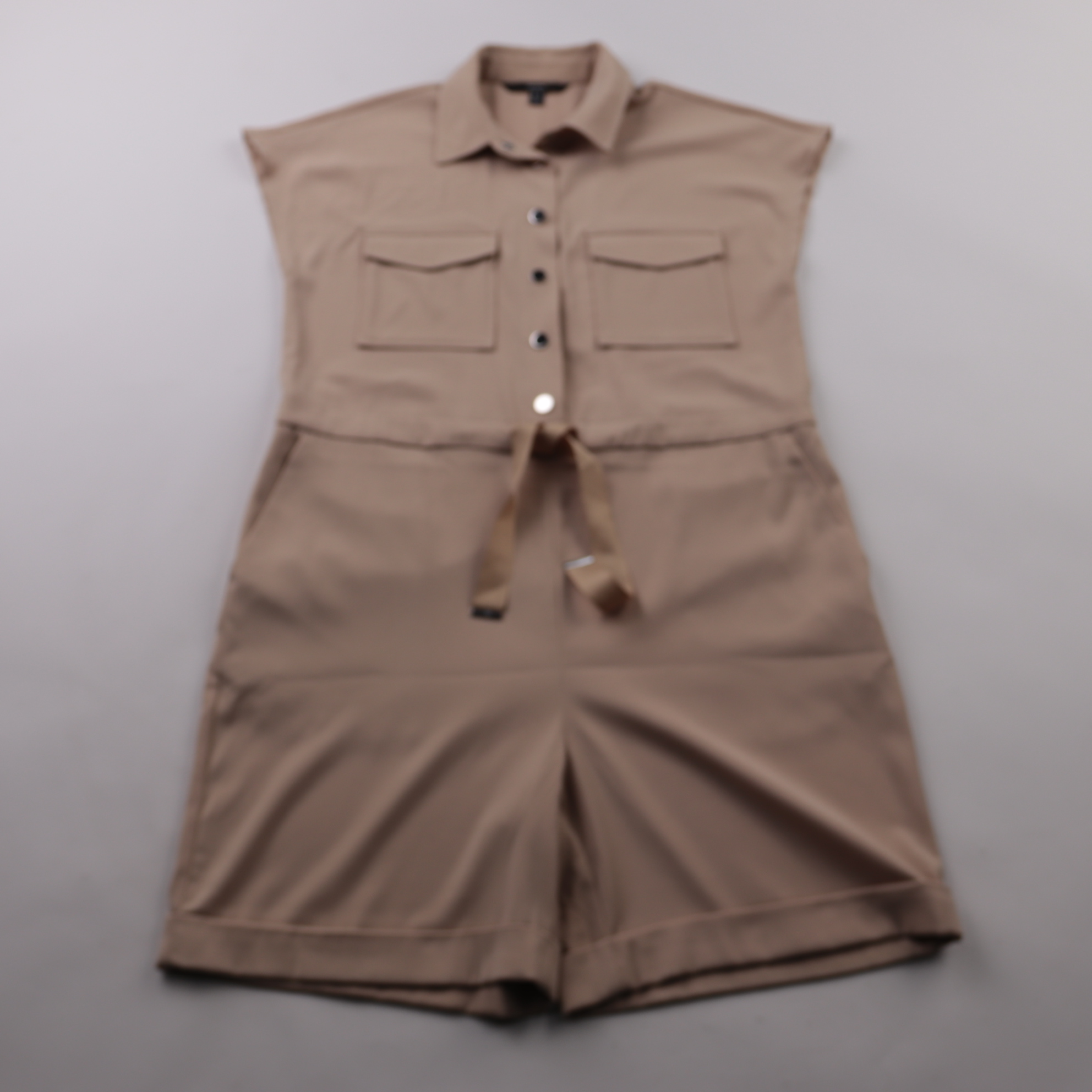 Женский комбинезон Vero Moda бежевого цвета с застёжкой на пуговицы, накладными карманами и поясом на талии. Подойдёт для тёплой погоды и повседневных образов в городе или в отпуске. Практичный вариант: есть карманы и можно регулировать посадку поясом.