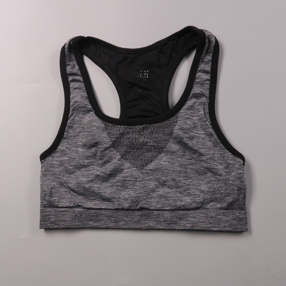 Спортивный топ Nike серого меланжа с борцовской спинкой и сетчатой вставкой для вентиляции. Подойдёт для тренировок, бега и фитнеса, хорошо сидит и не стесняет движения. Быстро сохнет и удобно носится под худи или майкой.