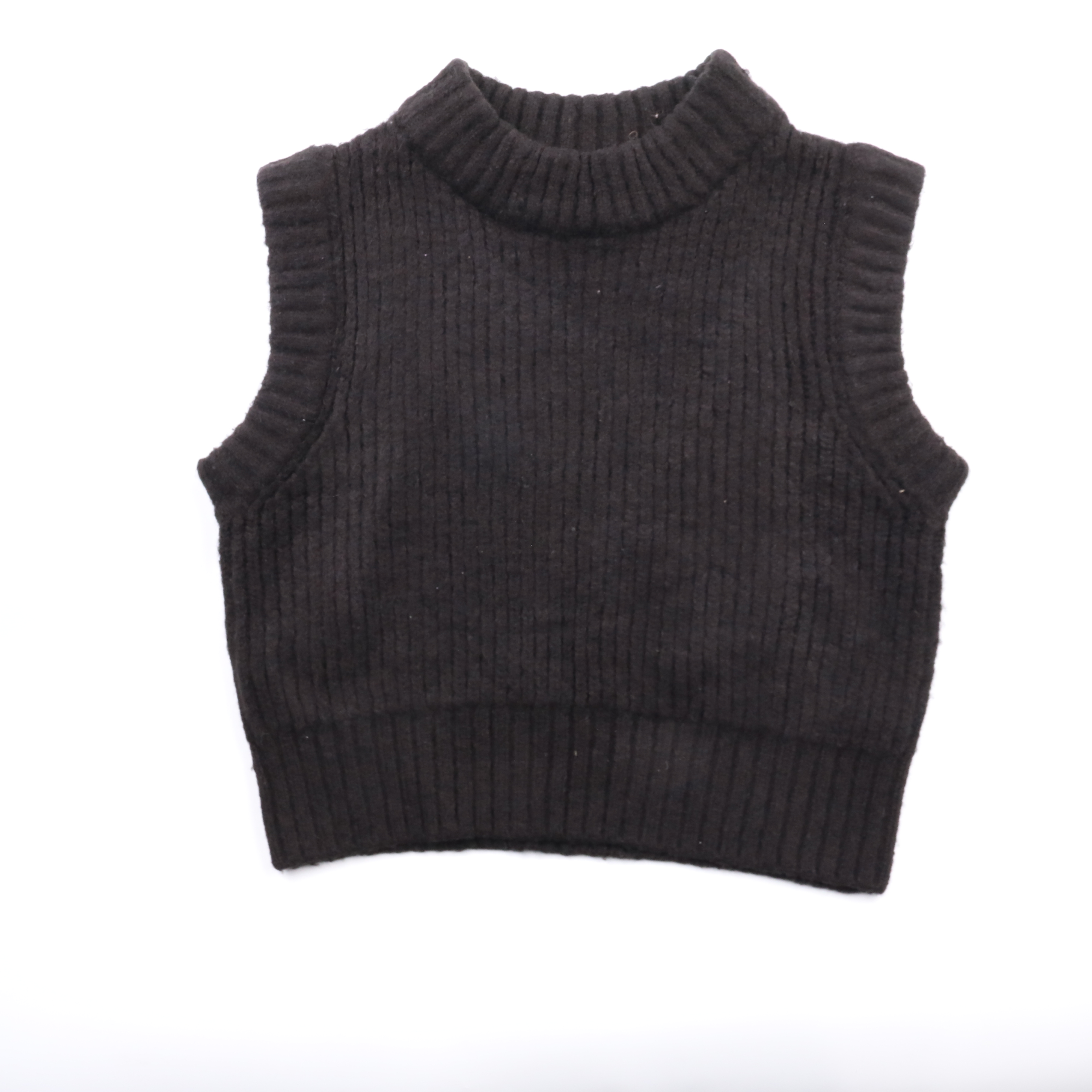 Трикотажная кофта Collusion без рукавов в рубчик с коротким воротником-стойкой. Подойдёт для многослойных образов с рубашкой или лонгсливом, а также как самостоятельный топ в прохладную погоду. Эластичная вязка хорошо тянется и комфортно садится по фиг...