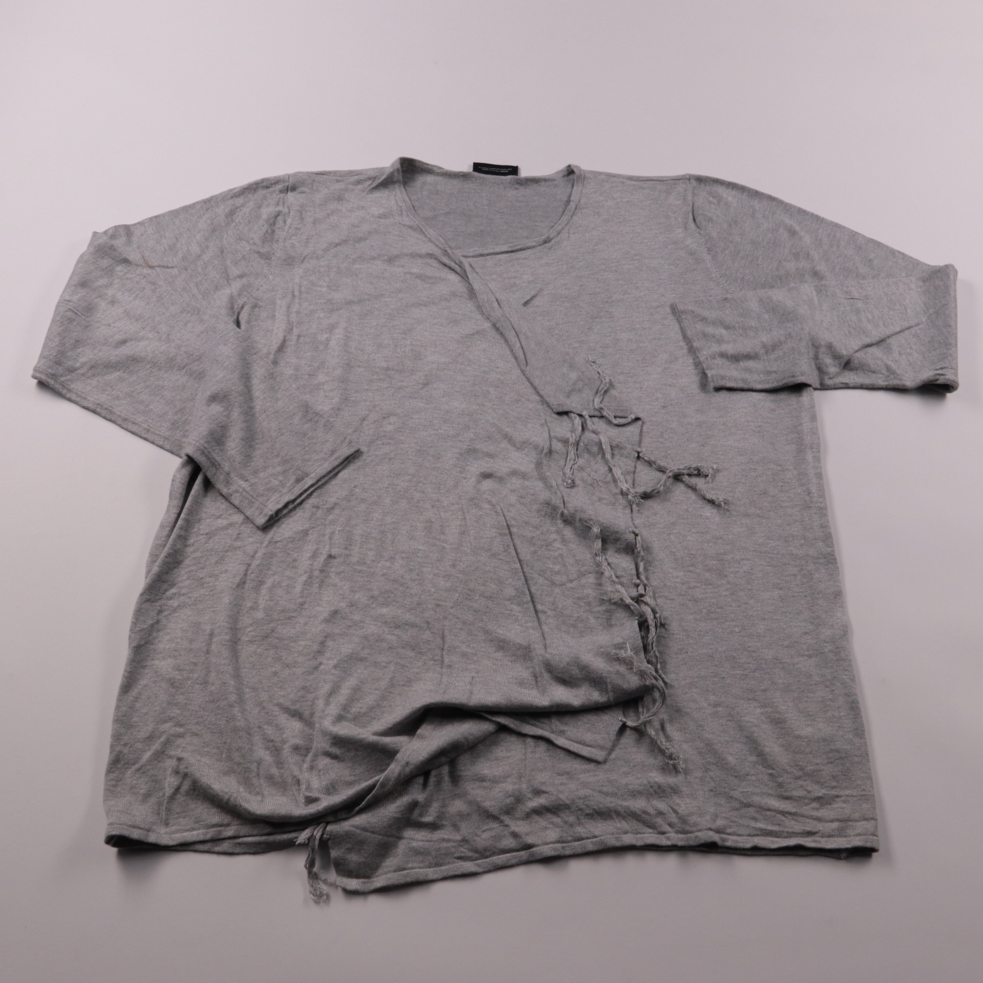 Трикотажная кофта Gina Benotti серого цвета с асимметричным запахом и завязками спереди. Подойдёт для повседневных образов в демисезон, удобно носить как самостоятельный верх или слоем под жакет. Мягкая вискоза хорошо драпируется и комфортна в носке.