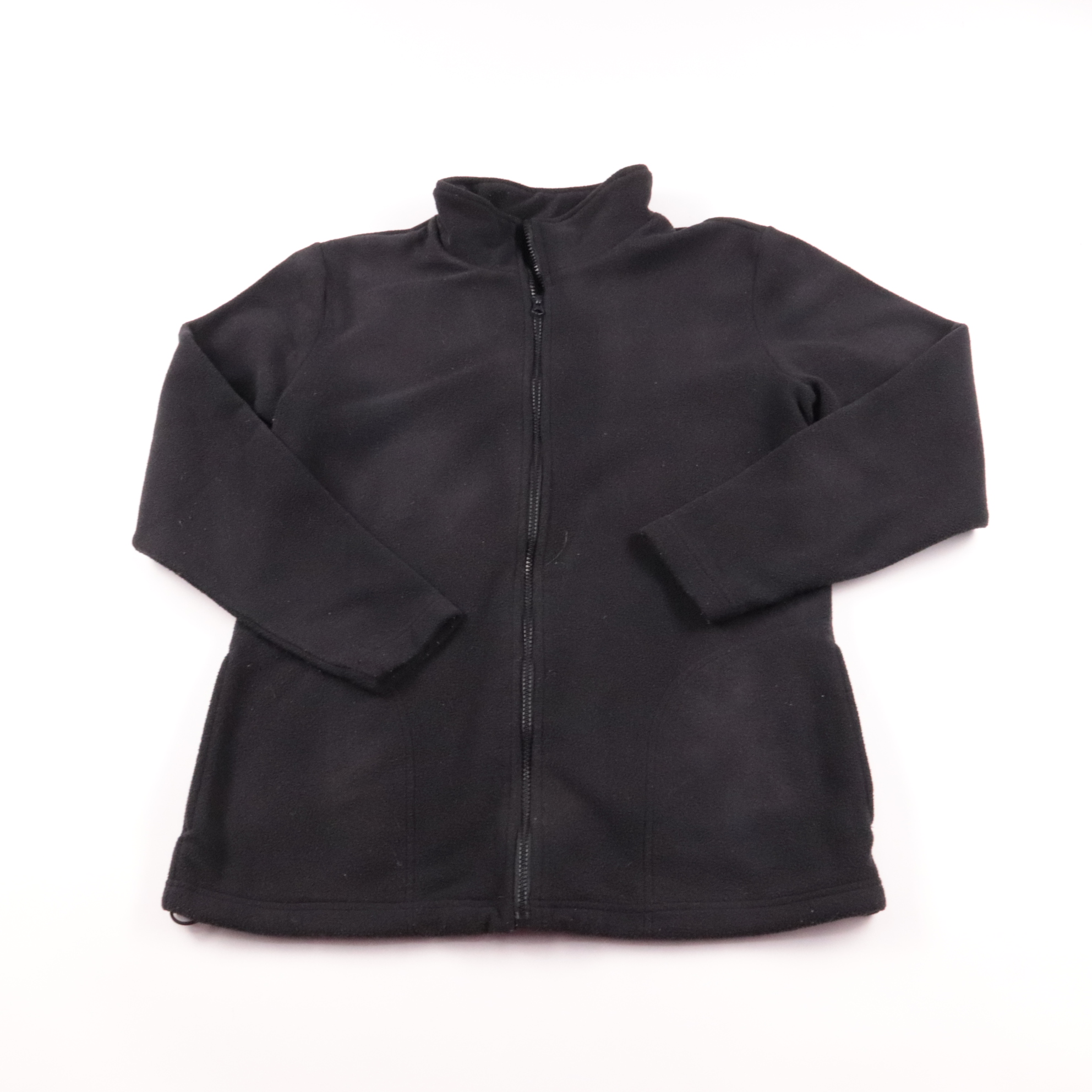Чёрная кофта на молнии со стойкой-воротником, материал 100% полиэстер. Подойдёт для прогулок и поездок в прохладную погоду, удобно носить как верхний слой или под куртку. Практична в уходе: легко стирается и быстро сохнет.