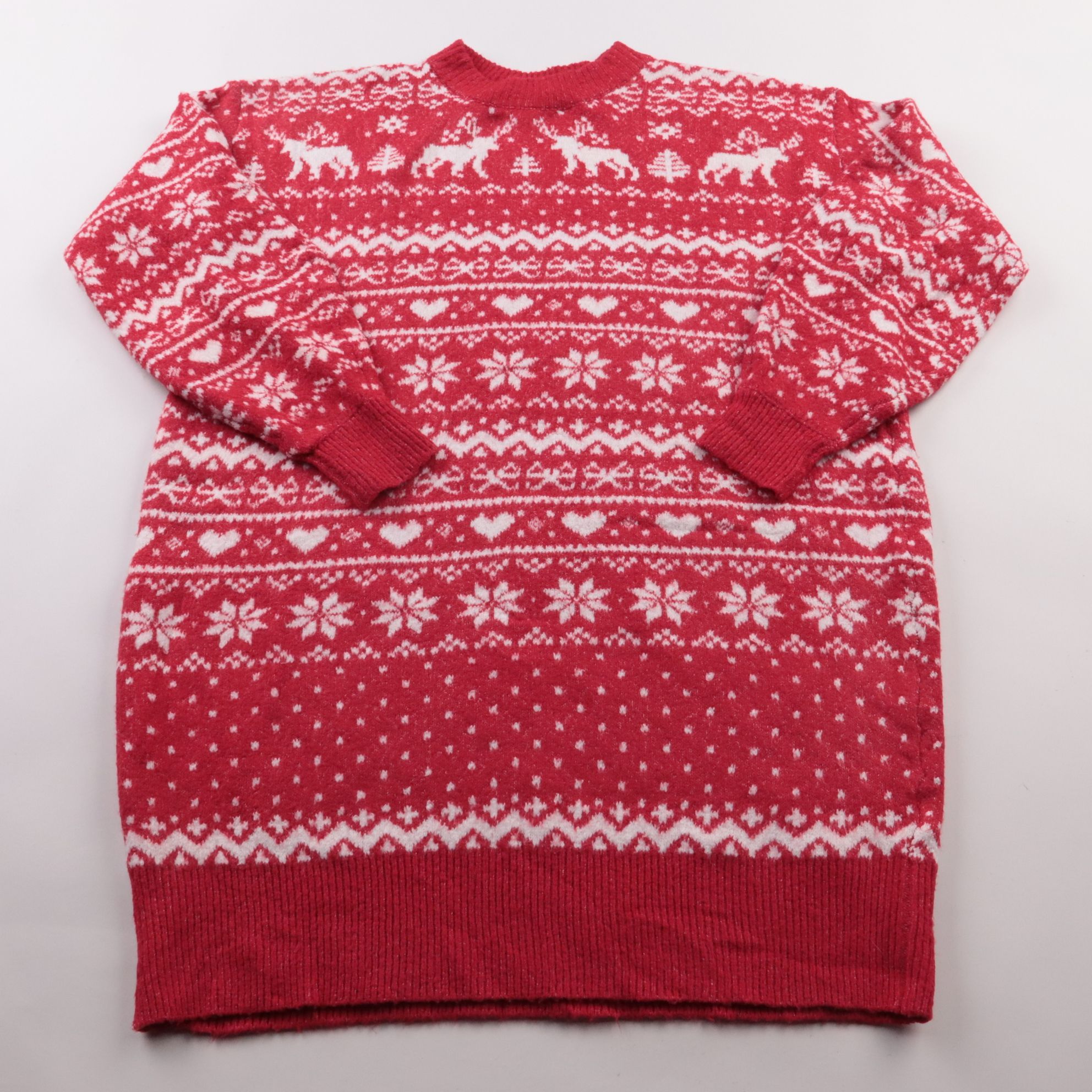 Женский свитер Silly Santa с ярким красно-белым жаккардовым новогодним узором (олени, снежинки и сердечки). Подойдёт для зимних прогулок, праздников и уютных вечеров дома. Мягкий эластичный материал хорошо тянется и комфортно сидит.