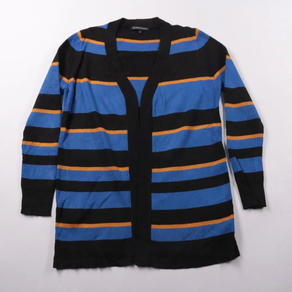 Трикотажный кардиган Tramontana в полоску, без застёжки, с V-образным вырезом и длинным рукавом. Подойдёт для повседневных образов в прохладную погоду, удобно носить поверх топа или водолазки. Вискозный состав мягкий и комфортный, изделие легко сочетае...