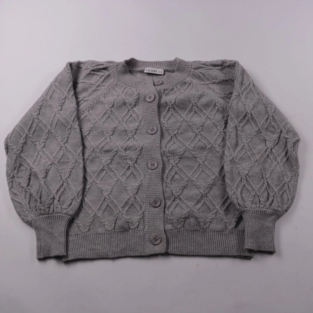 Вязаный кардиган Gallery серого цвета с фактурным узором и застёжкой на пуговицы. Подойдёт для прохладной погоды и многослойных повседневных образов. Практичный вариант: легко сочетать с базовыми вещами и удобно носить как верхний слой в помещении.