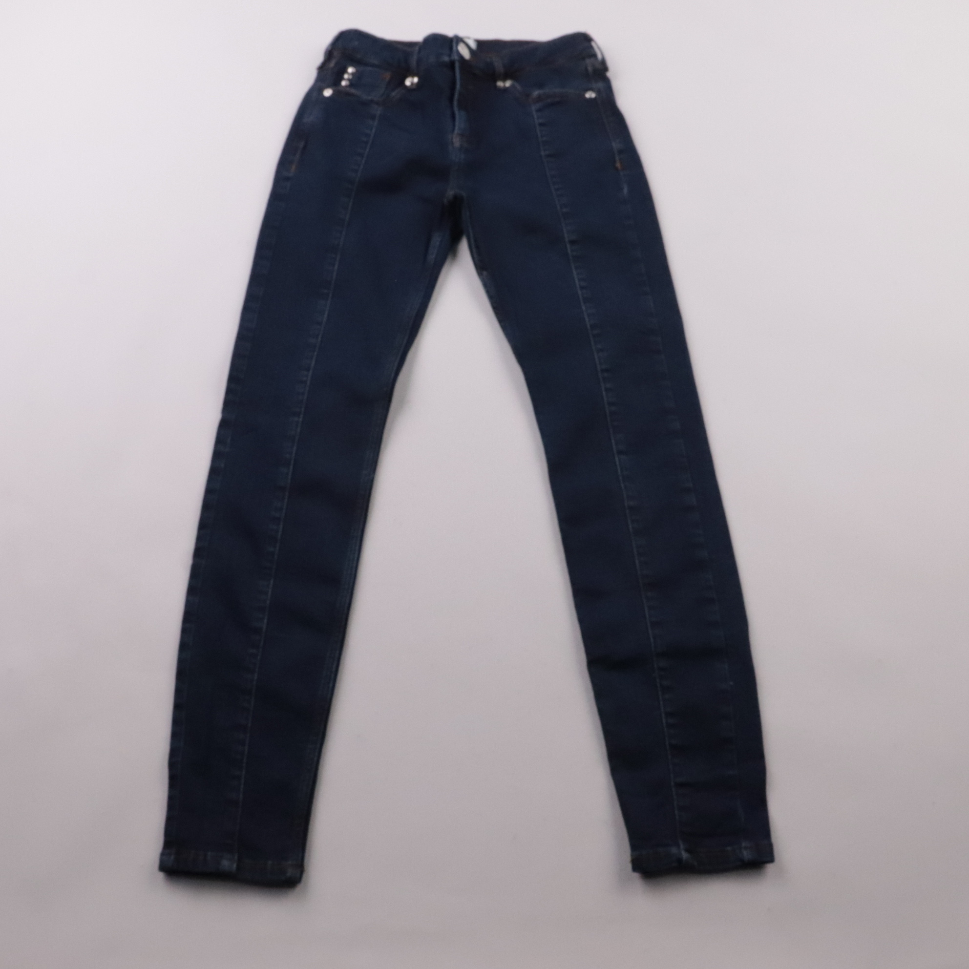 Джинсы River Island из тёмно-синего денима, узкая посадка по ноге. Подойдут на каждый день и для более аккуратных образов с рубашкой или жакетом. Плотная ткань со стрейчем хорошо садится и остаётся комфортной в носке.