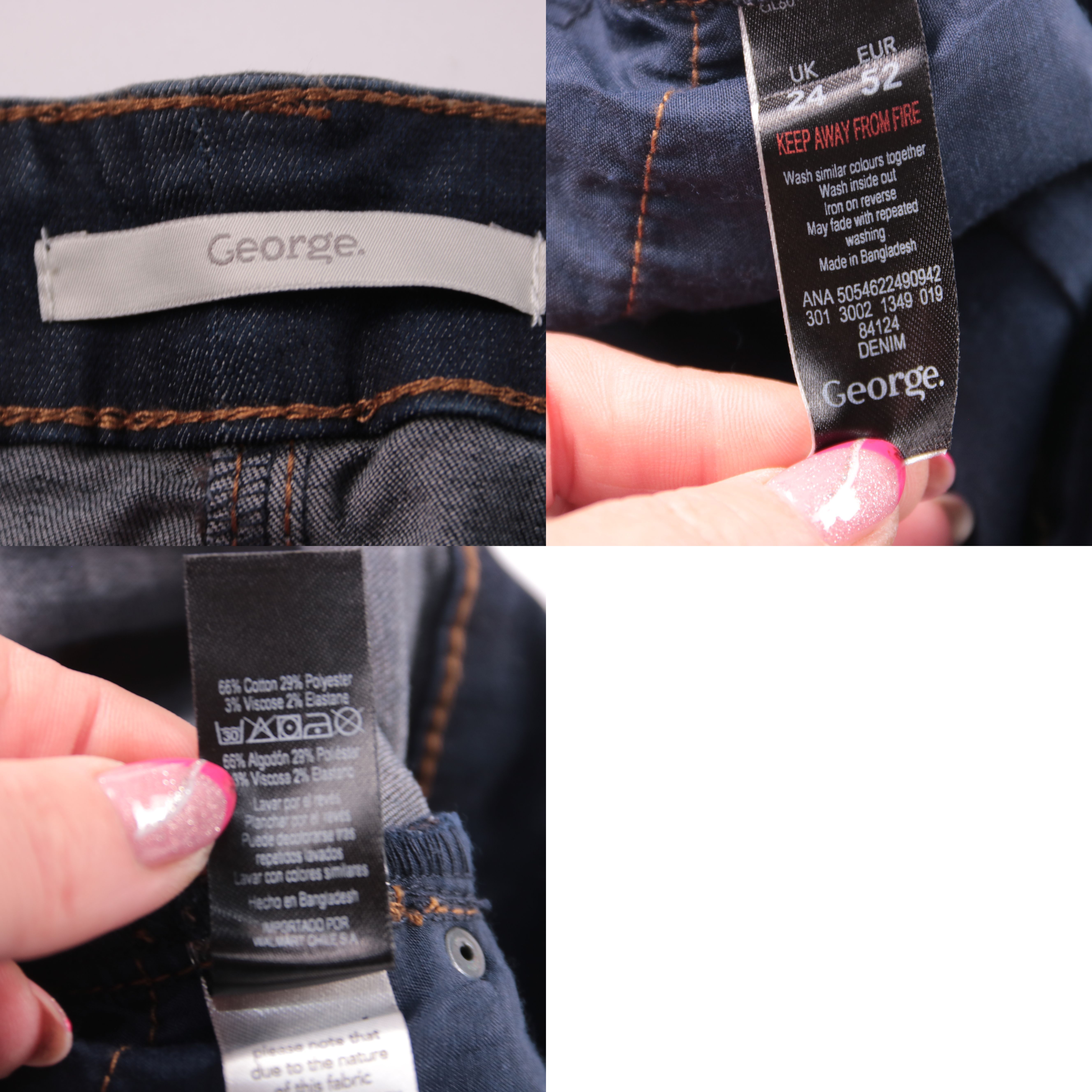 Женские джинсы George из тёмно-синего денима со строчкой контрастной нитью и классическими карманами. Подойдут на каждый день и для офиса с базовыми вещами, посадка комфортная за счёт эластана в составе. Плотная ткань хорошо держит форму и не просвечив...