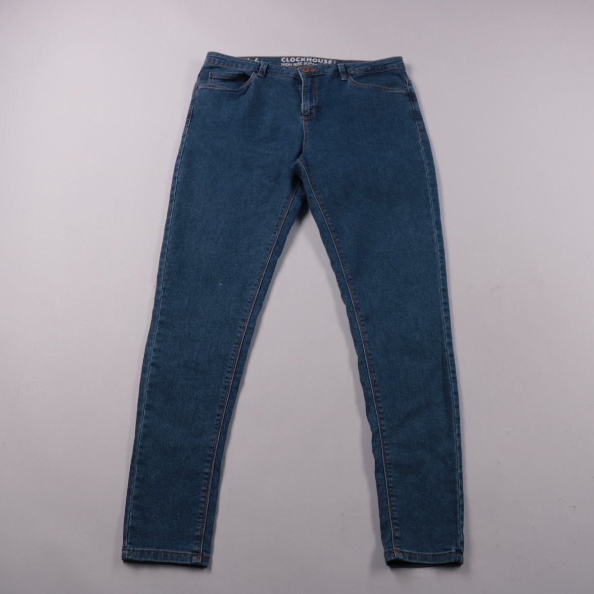 Женские джинсы Clockhouse (C&A) модели High Rise Super Skinny, с высокой посадкой и узкими штанинами. Подойдут для повседневных образов и сочетания с кроссовками или ботильонами. Эластичная ткань комфортно садится по фигуре и не сковывает движения.