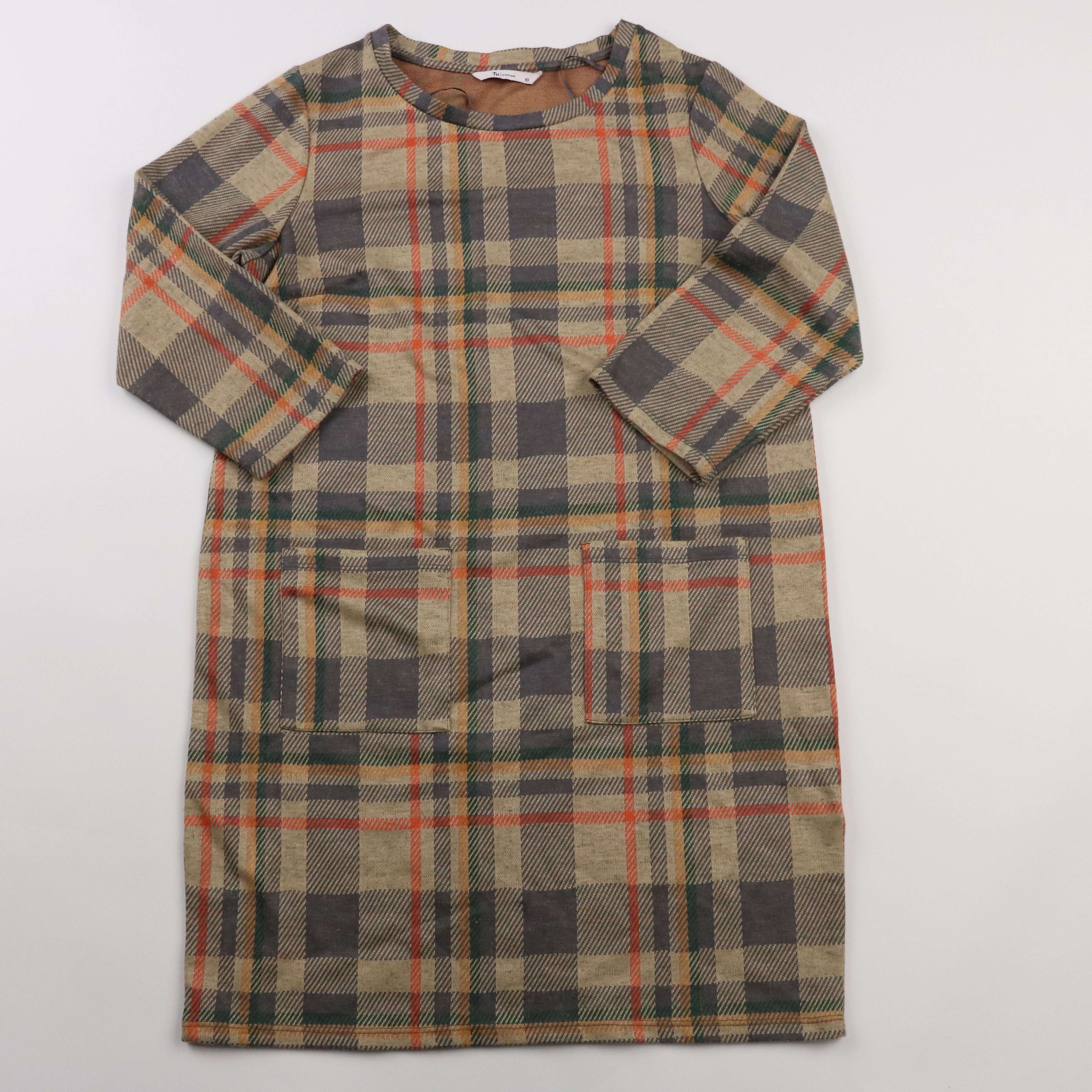 Повседневное платье Tu в клетку, прямого кроя с длинным рукавом и накладными карманами спереди. Подойдёт для офиса и прогулок в прохладную погоду, легко сочетается с ботинками или кедами. Практичный плюс — плотная ткань почти не мнётся и комфортно тяне...