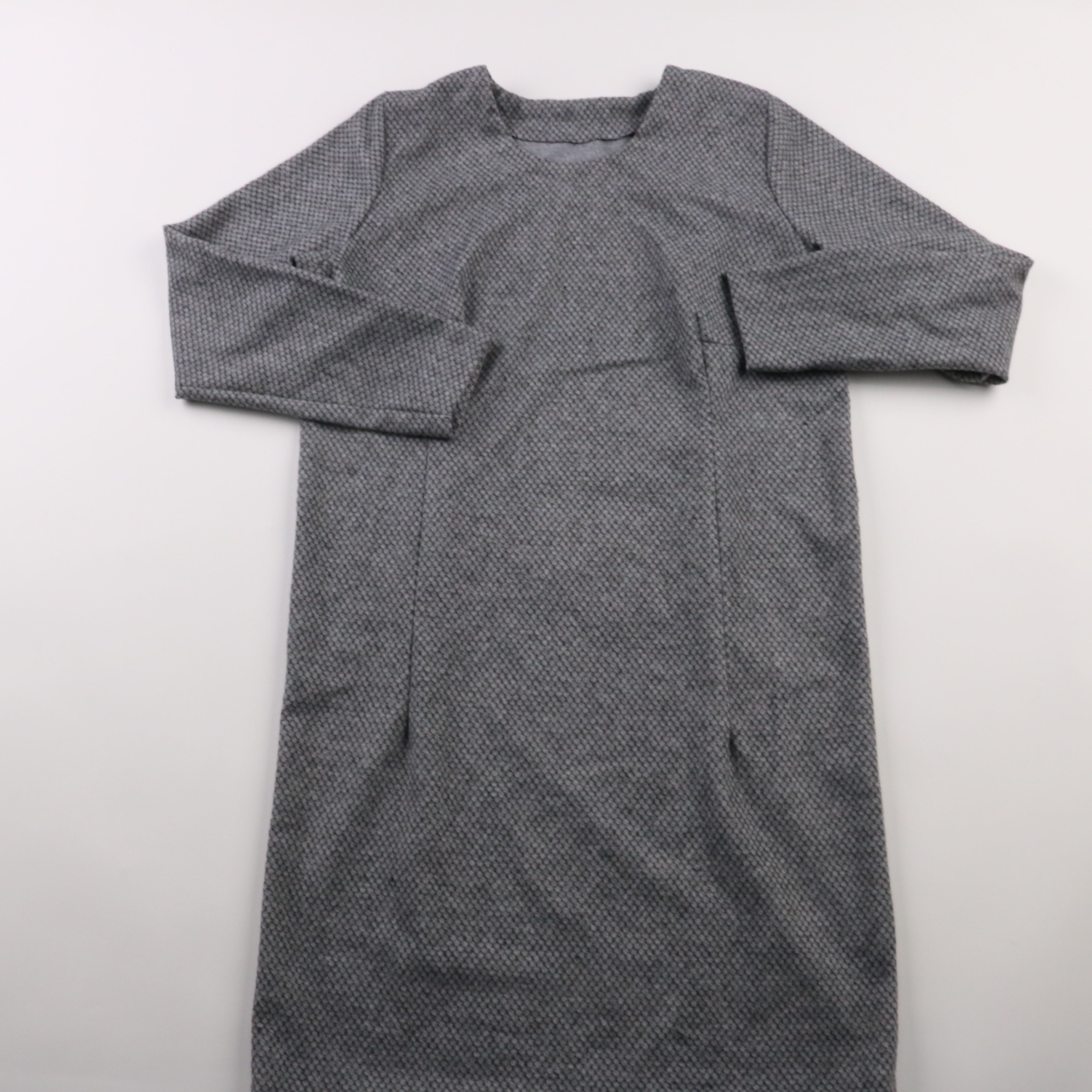 Серое повседневное платье прямого кроя с длинным рукавом и лаконичным вырезом. Подойдёт для офиса и на каждый день, легко сочетается с жакетом или кардиганом. Практичная ткань и спокойный цвет делают его удобным вариантом на прохладную погоду.