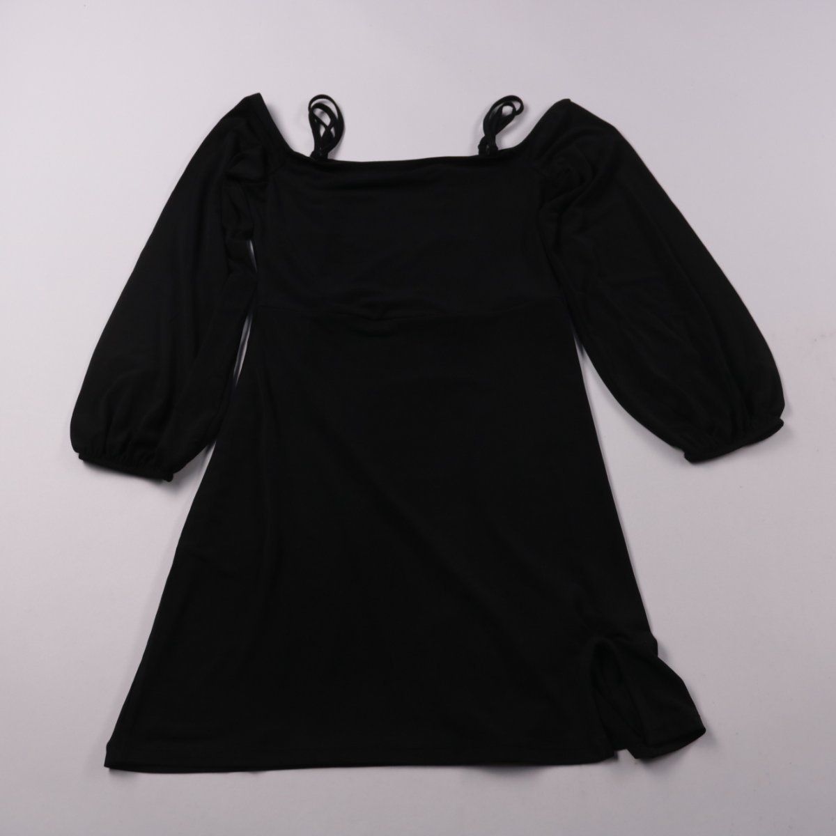 Чёрное платье NA-KD (коллаборация Pamela x NA-KD) с квадратным вырезом и объёмными рукавами. Подойдёт для повседневных образов и выходов вечером, хорошо сочетается с каблуками или грубыми ботинками. Ткань с добавлением эластана немного тянется и комфортно садится по фигуре.
